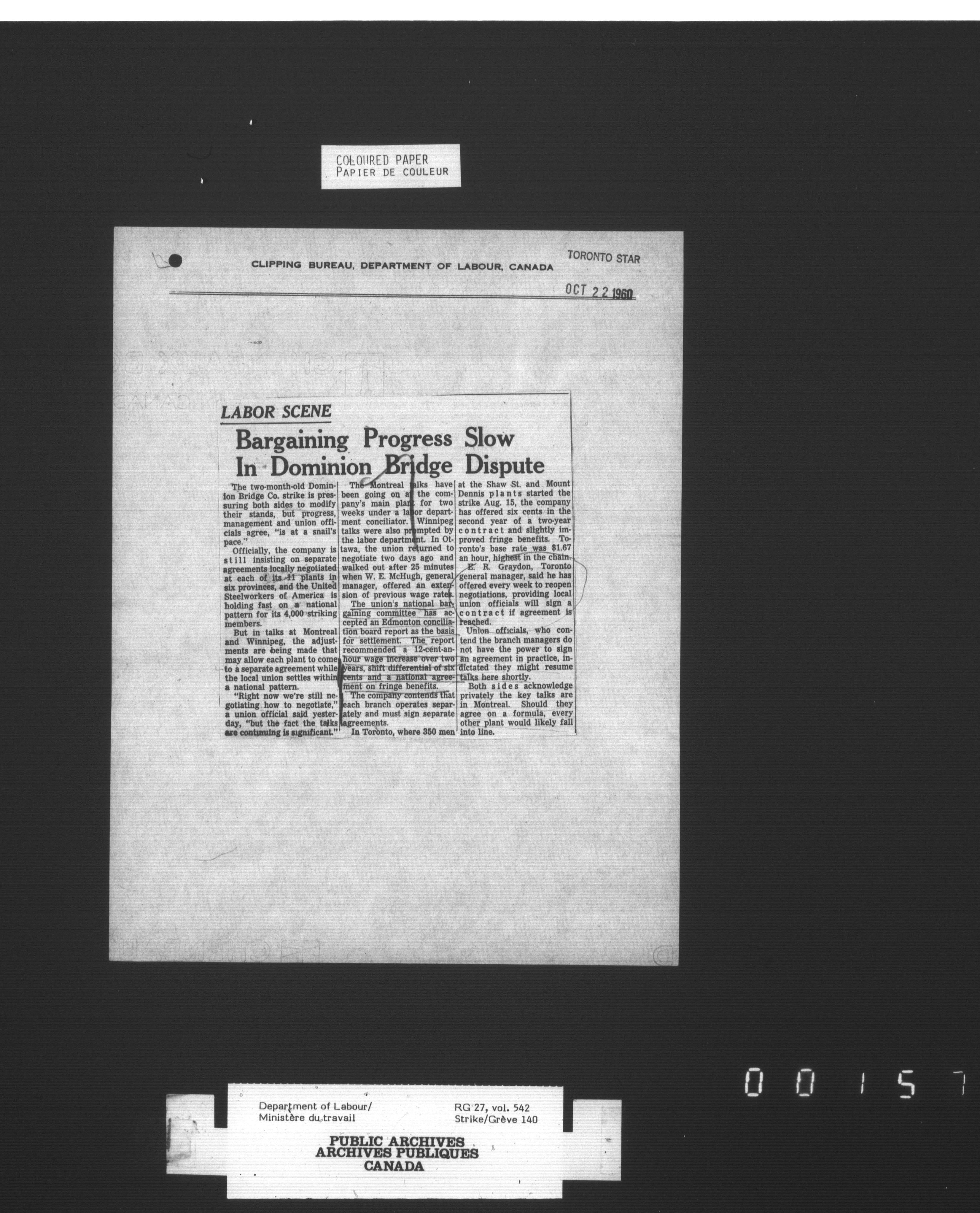 Department of Labour, Economics and Research Branch : Strikes and lockout files - 3401