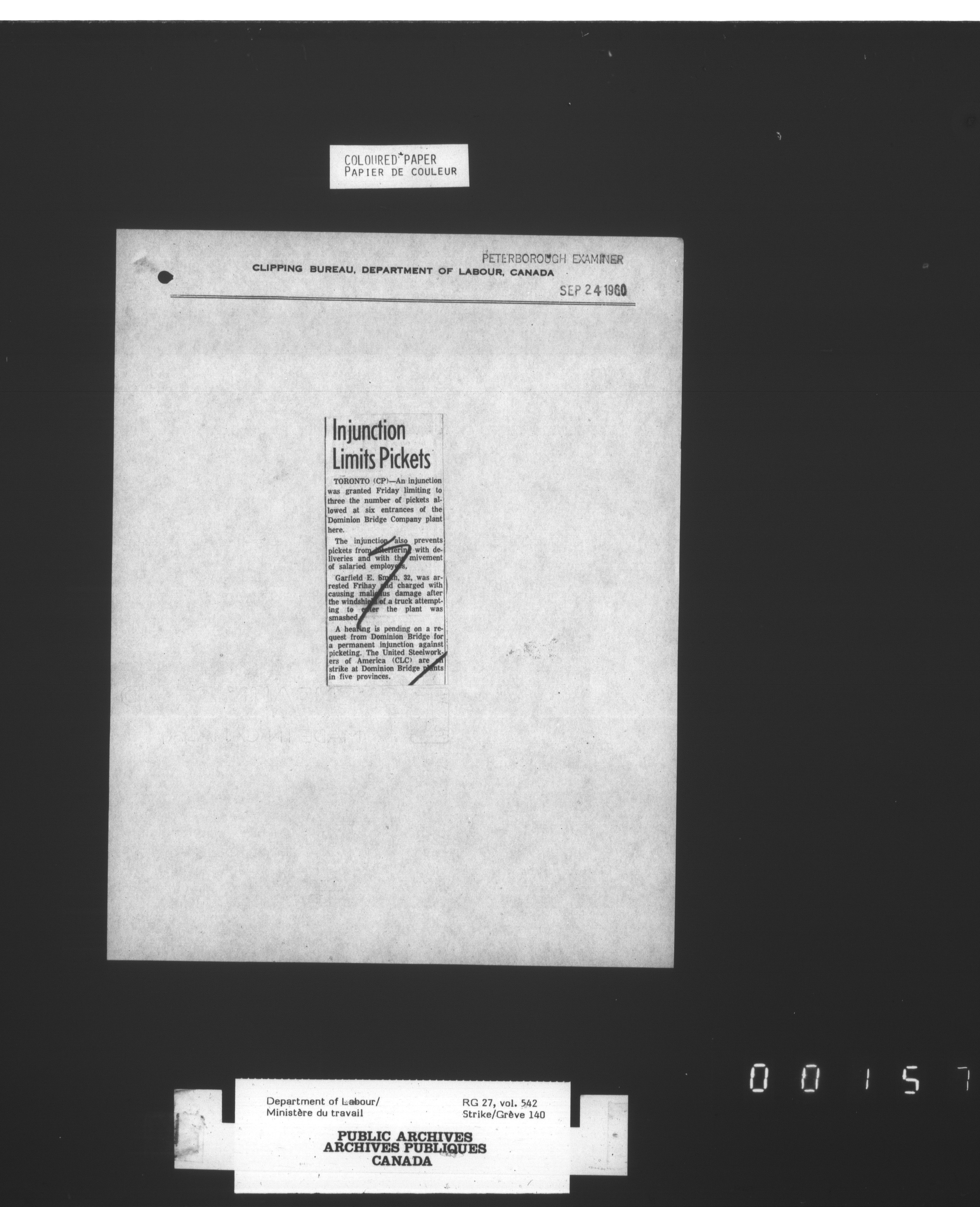 Department of Labour, Economics and Research Branch : Strikes and lockout files - 3401
