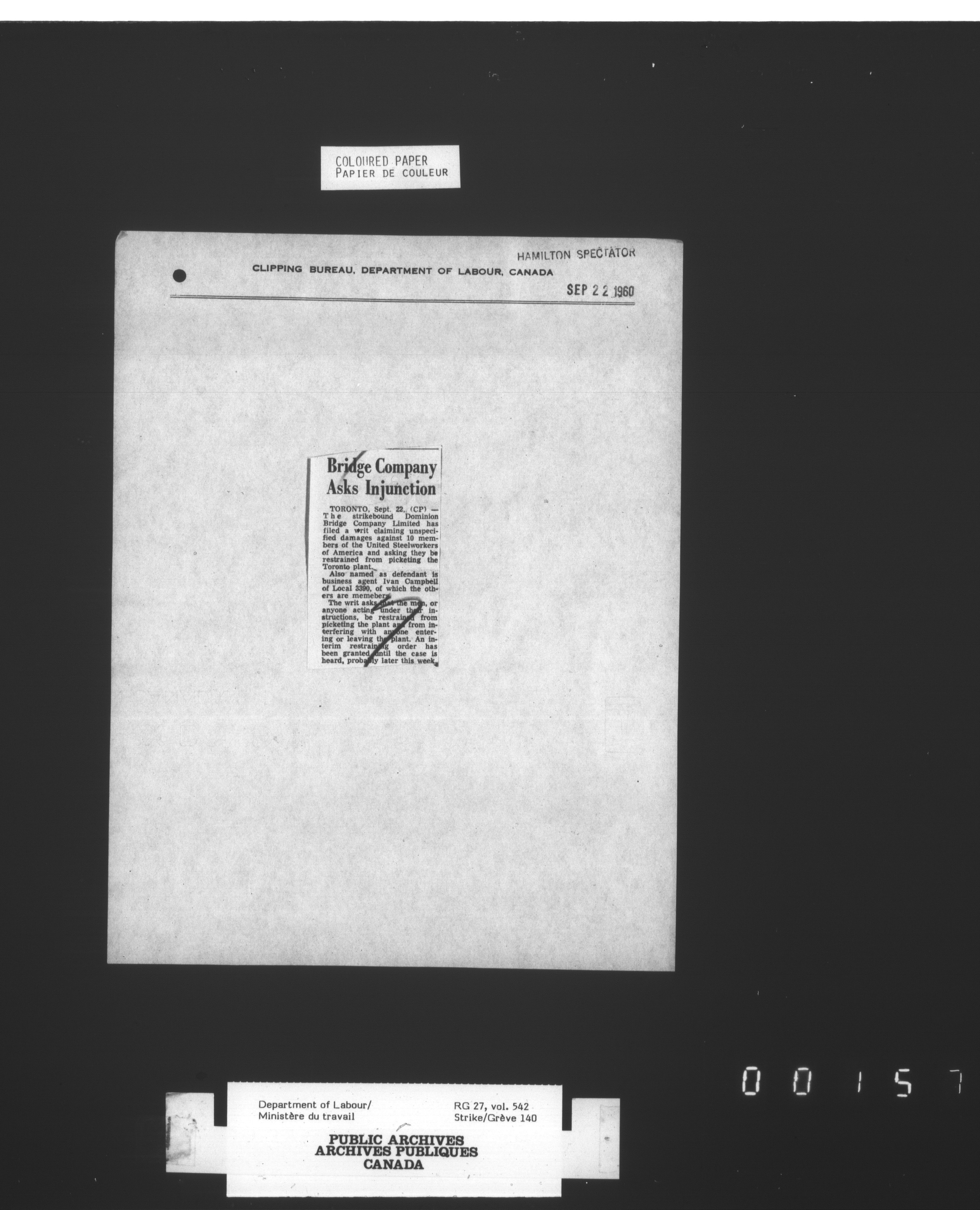 Department of Labour, Economics and Research Branch : Strikes and lockout files - 3401