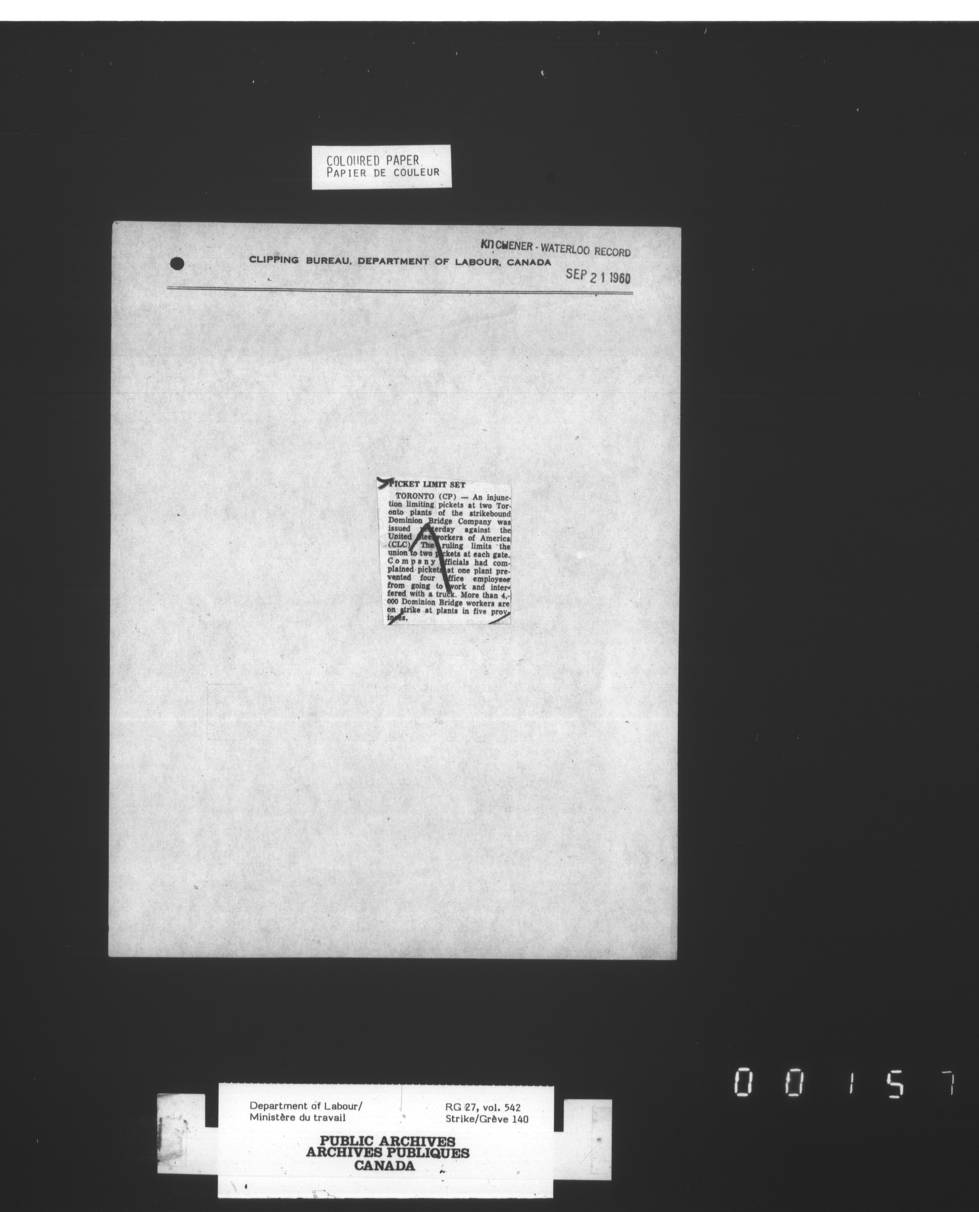Department of Labour, Economics and Research Branch : Strikes and lockout files - 3401