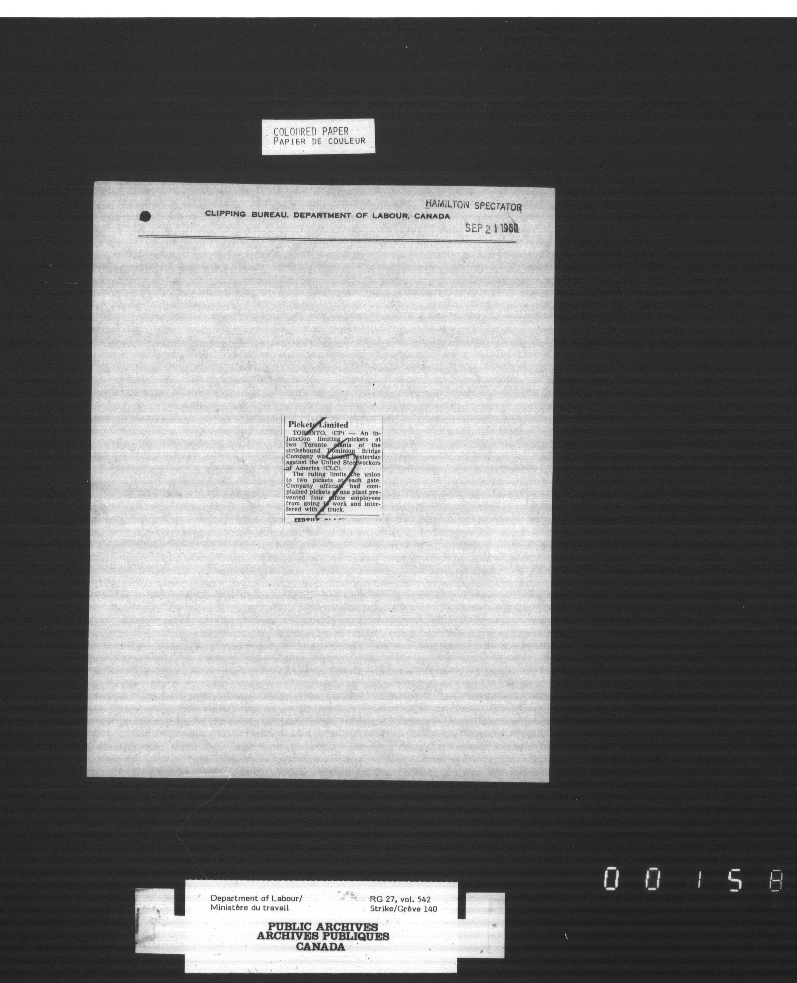 Department of Labour, Economics and Research Branch : Strikes and lockout files - 3401