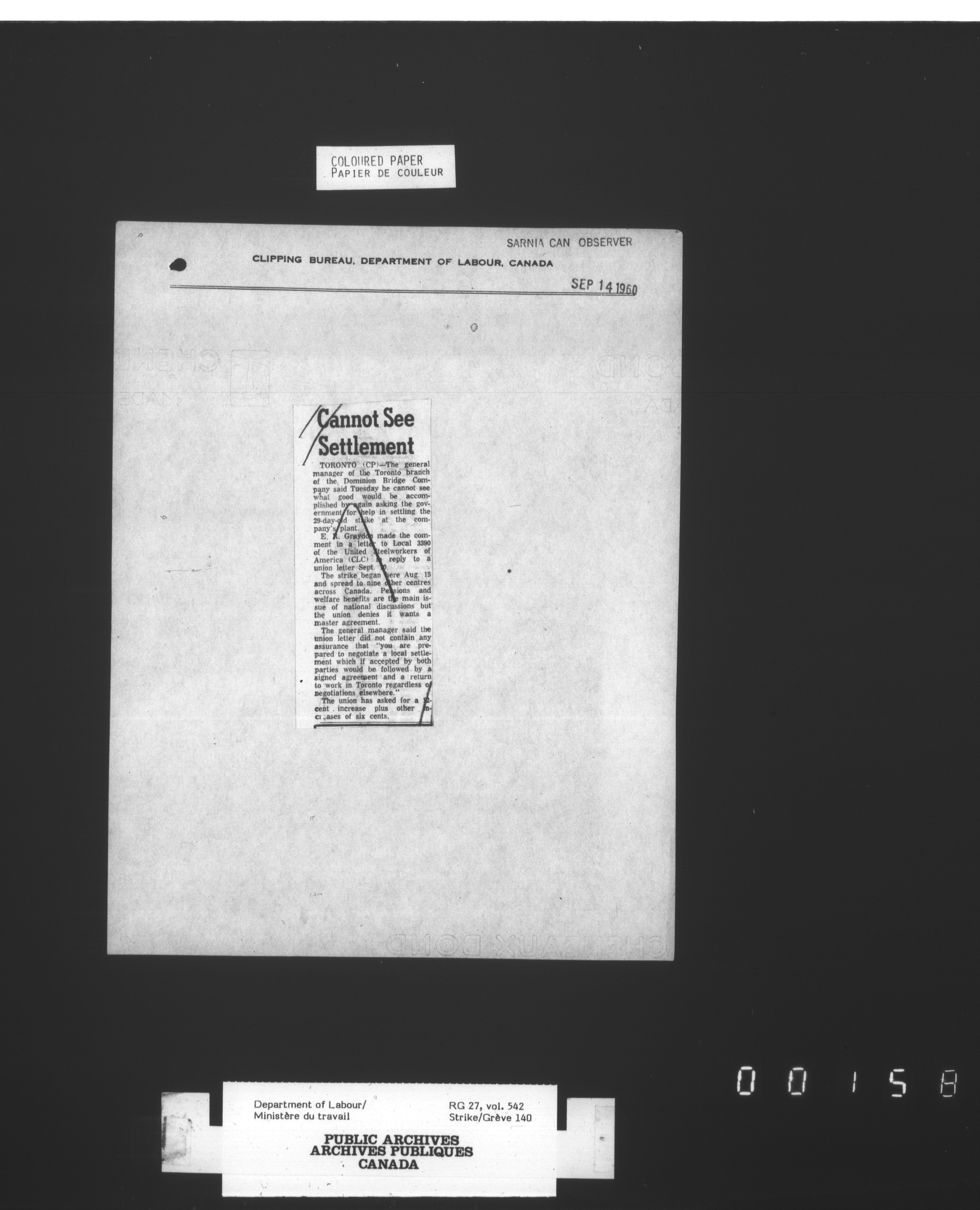 Department of Labour, Economics and Research Branch : Strikes and lockout files - 3401