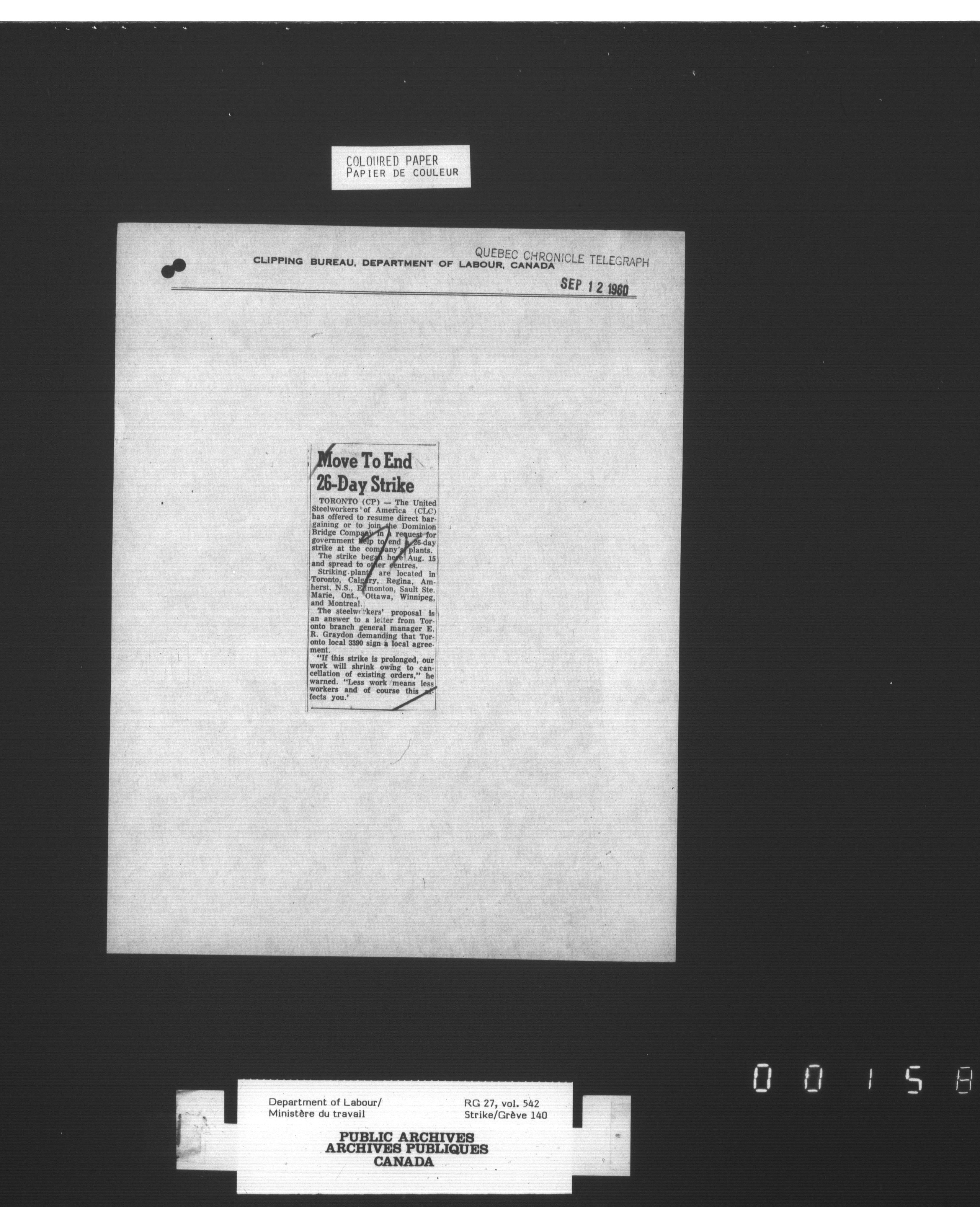 Department of Labour, Economics and Research Branch : Strikes and lockout files - 3401