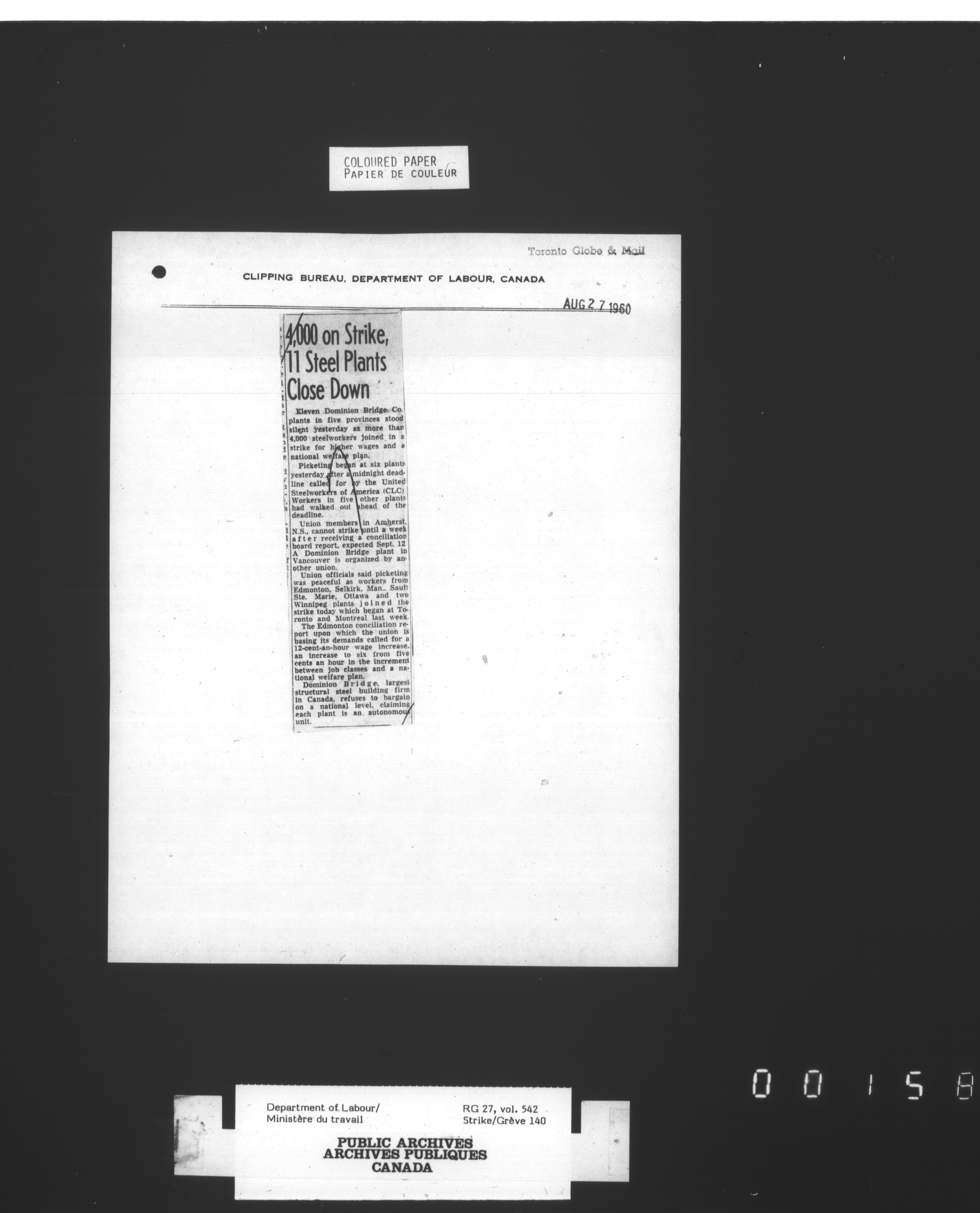 Department of Labour, Economics and Research Branch : Strikes and lockout files - 3401