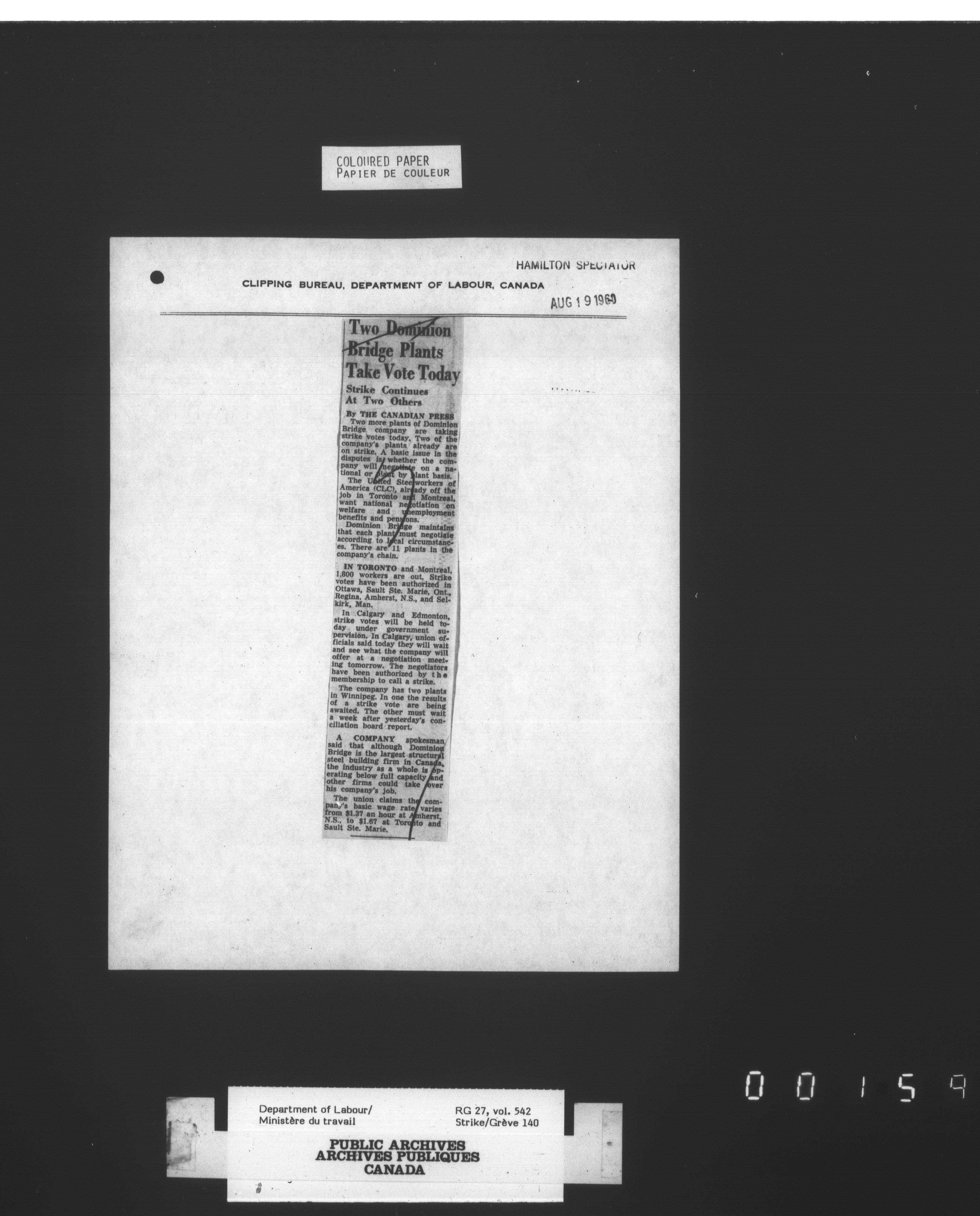 Department of Labour, Economics and Research Branch : Strikes and lockout files - 3401