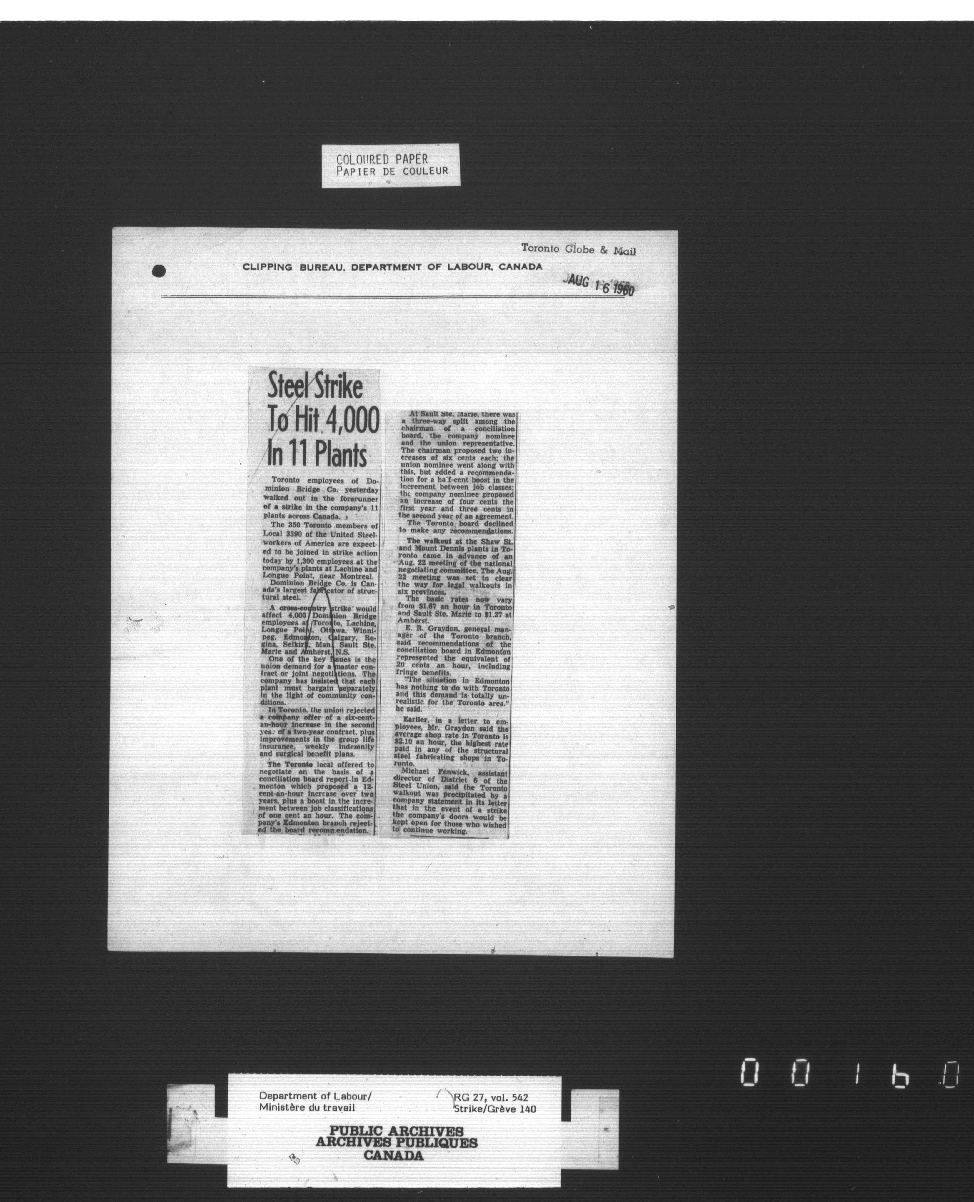 Department of Labour, Economics and Research Branch : Strikes and lockout files - 3401