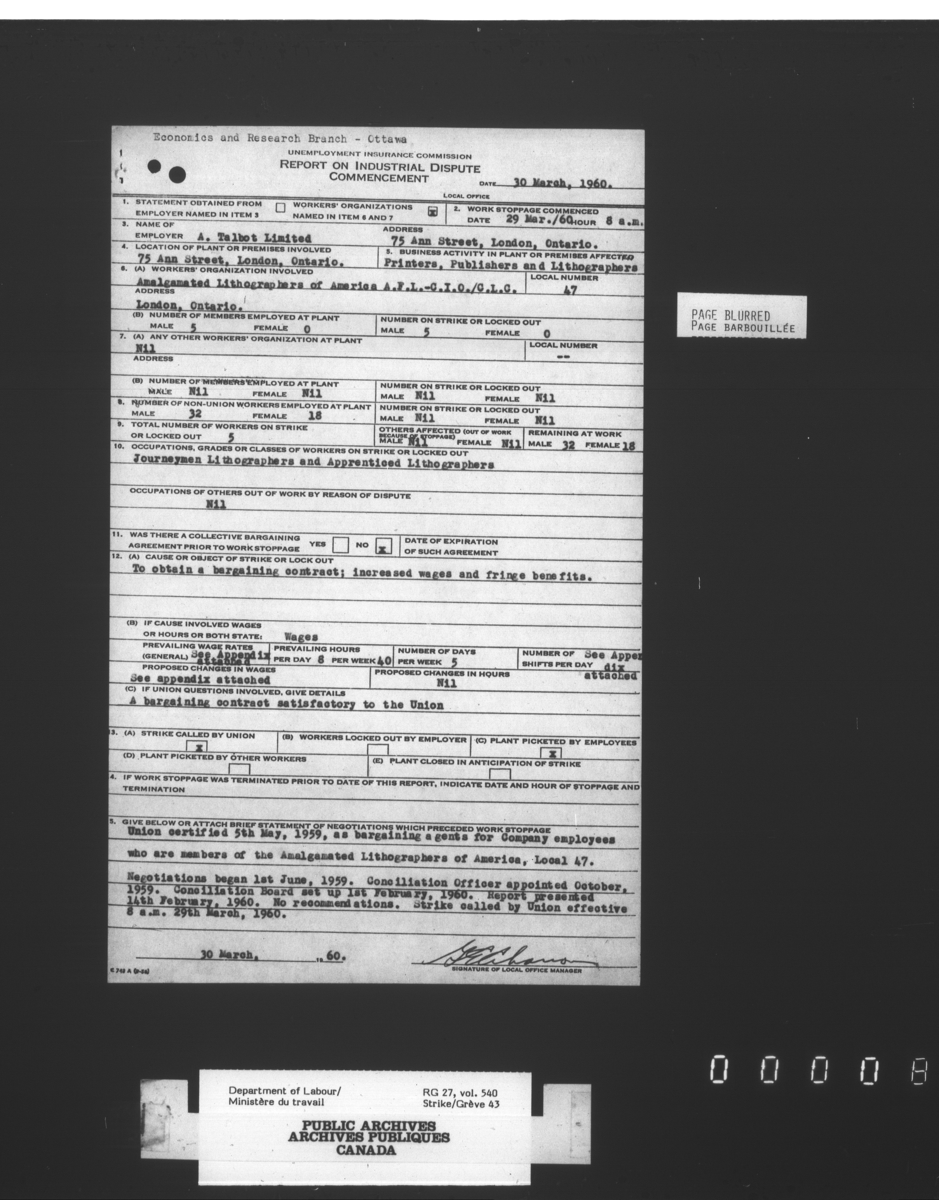 Department of Labour, Economics and Research Branch : Strikes and lockout files - 3401