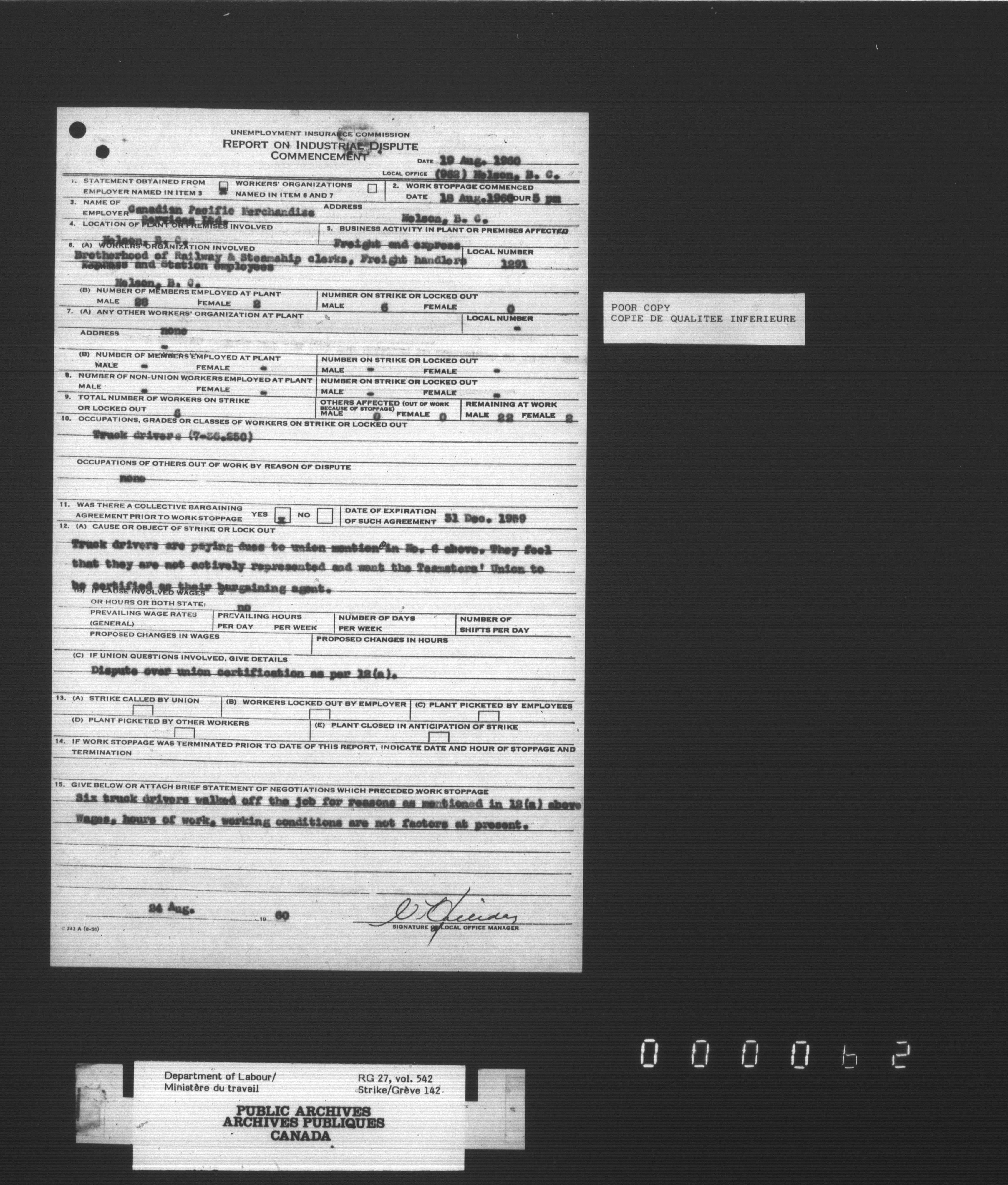 Department of Labour, Economics and Research Branch : Strikes and lockout files - 3402
