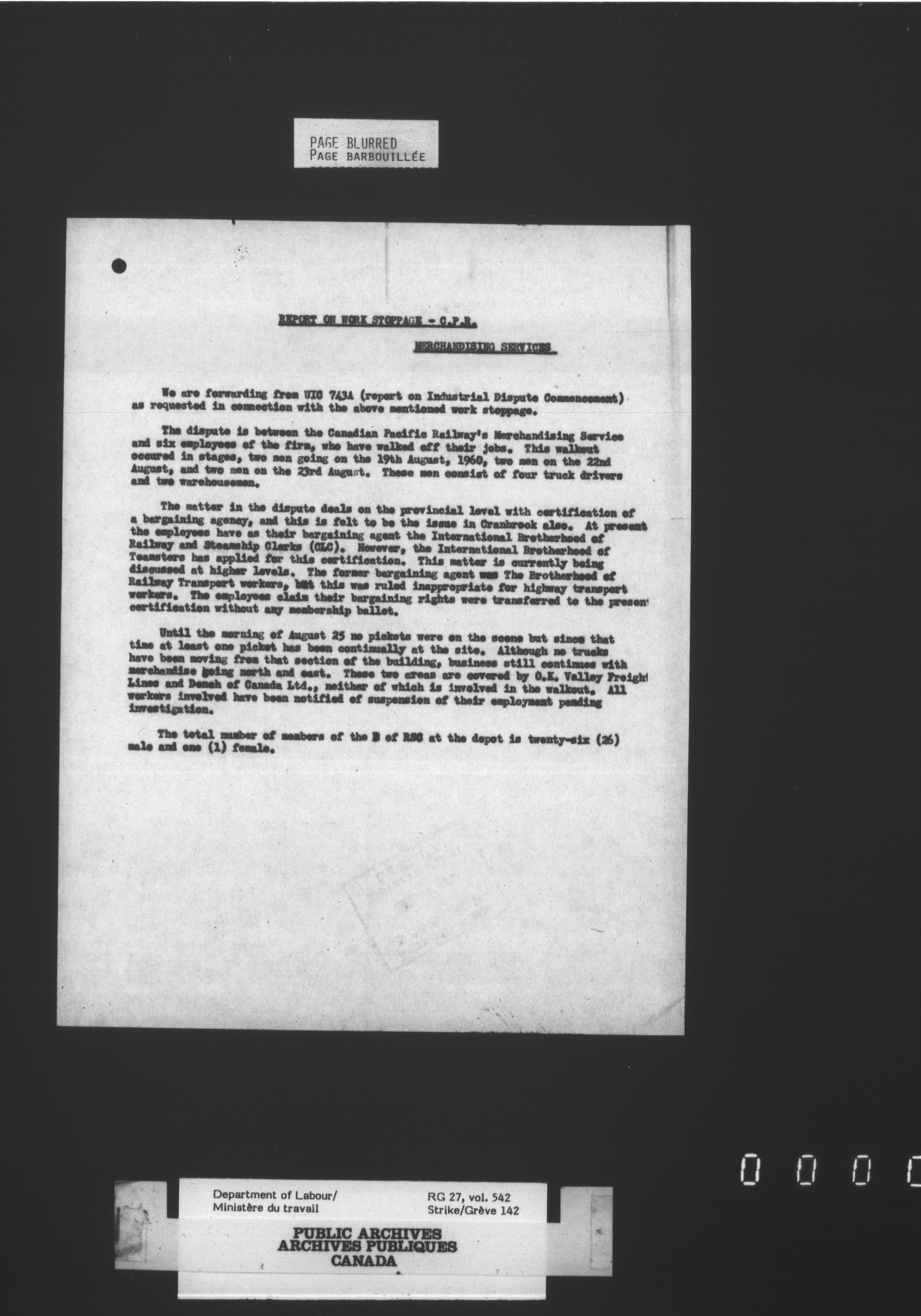 Department of Labour, Economics and Research Branch : Strikes and lockout files - 3402