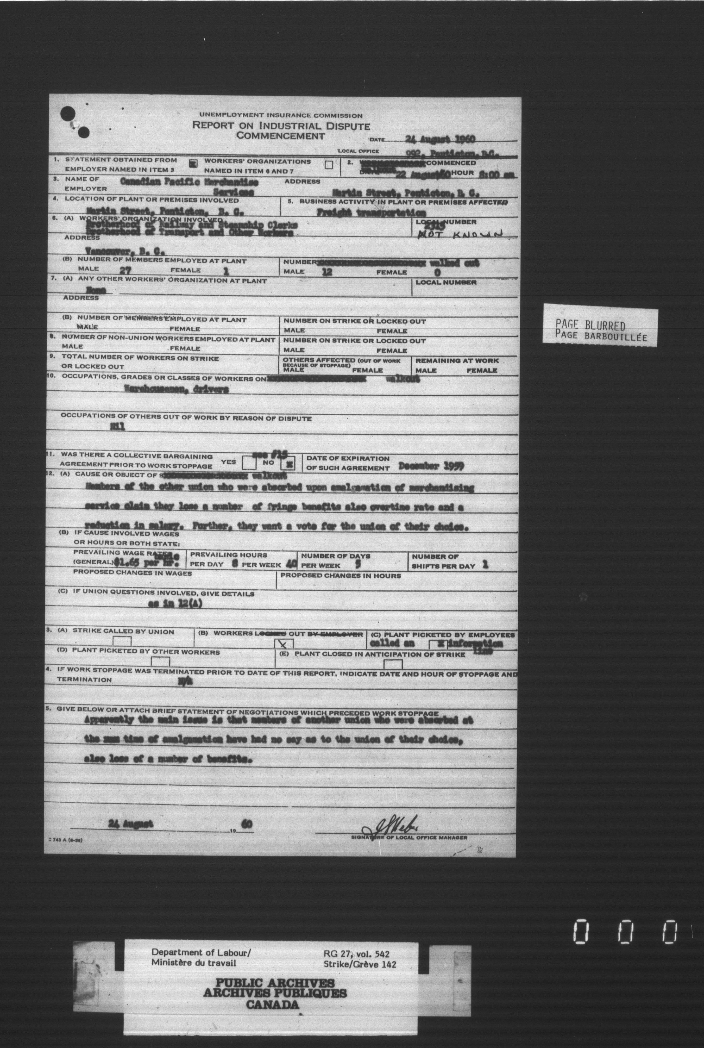 Department of Labour, Economics and Research Branch : Strikes and lockout files - 3402