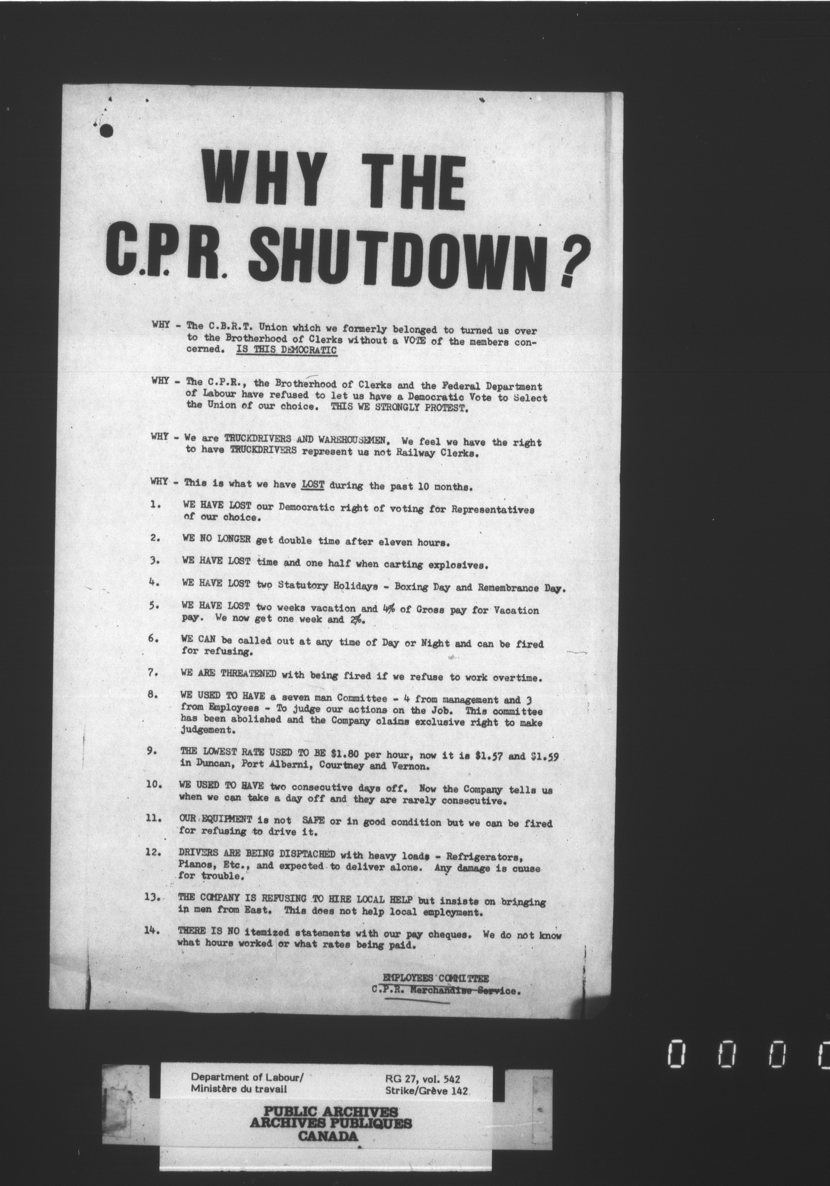 Department of Labour, Economics and Research Branch : Strikes and lockout files - 3402