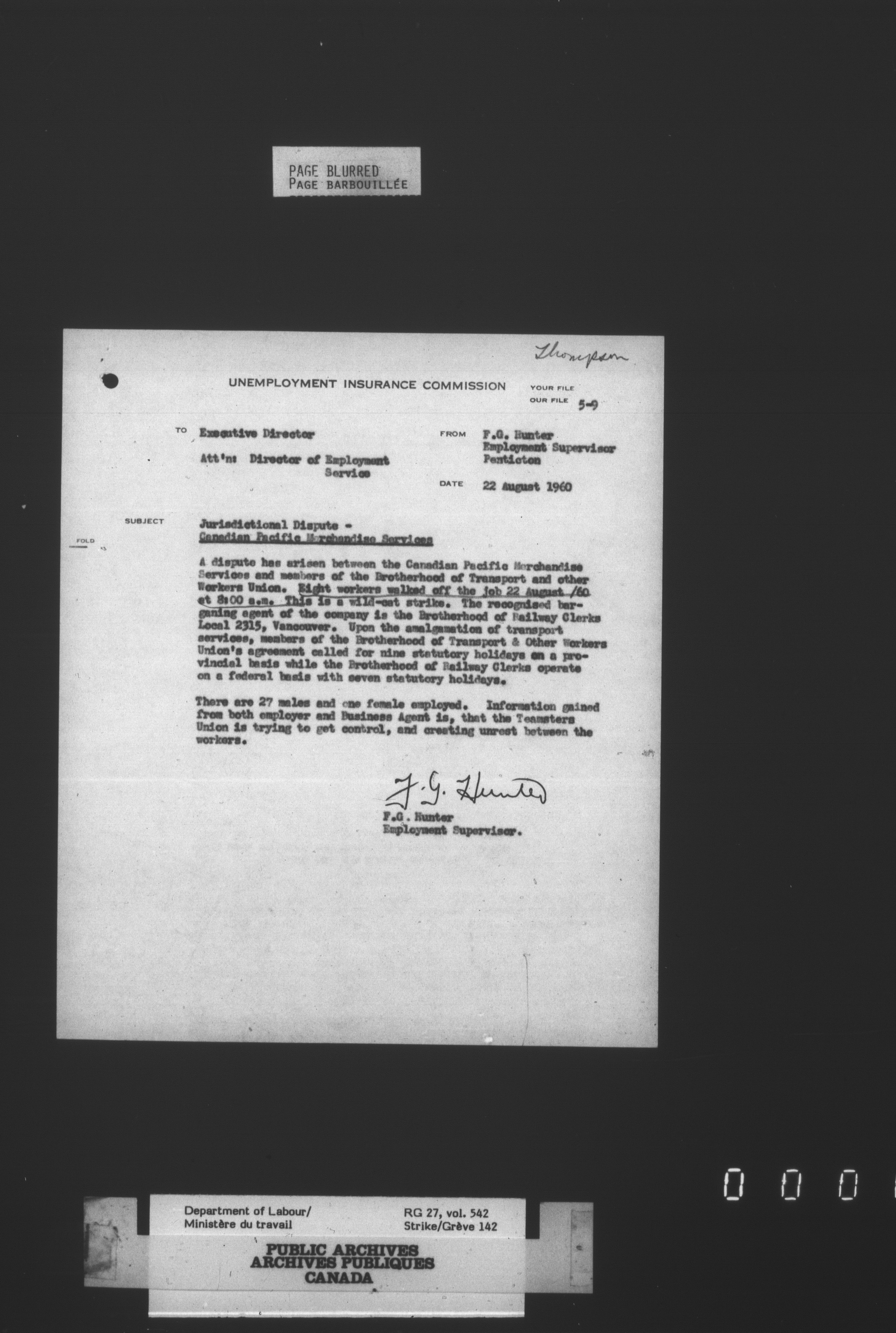 Department of Labour, Economics and Research Branch : Strikes and lockout files - 3402