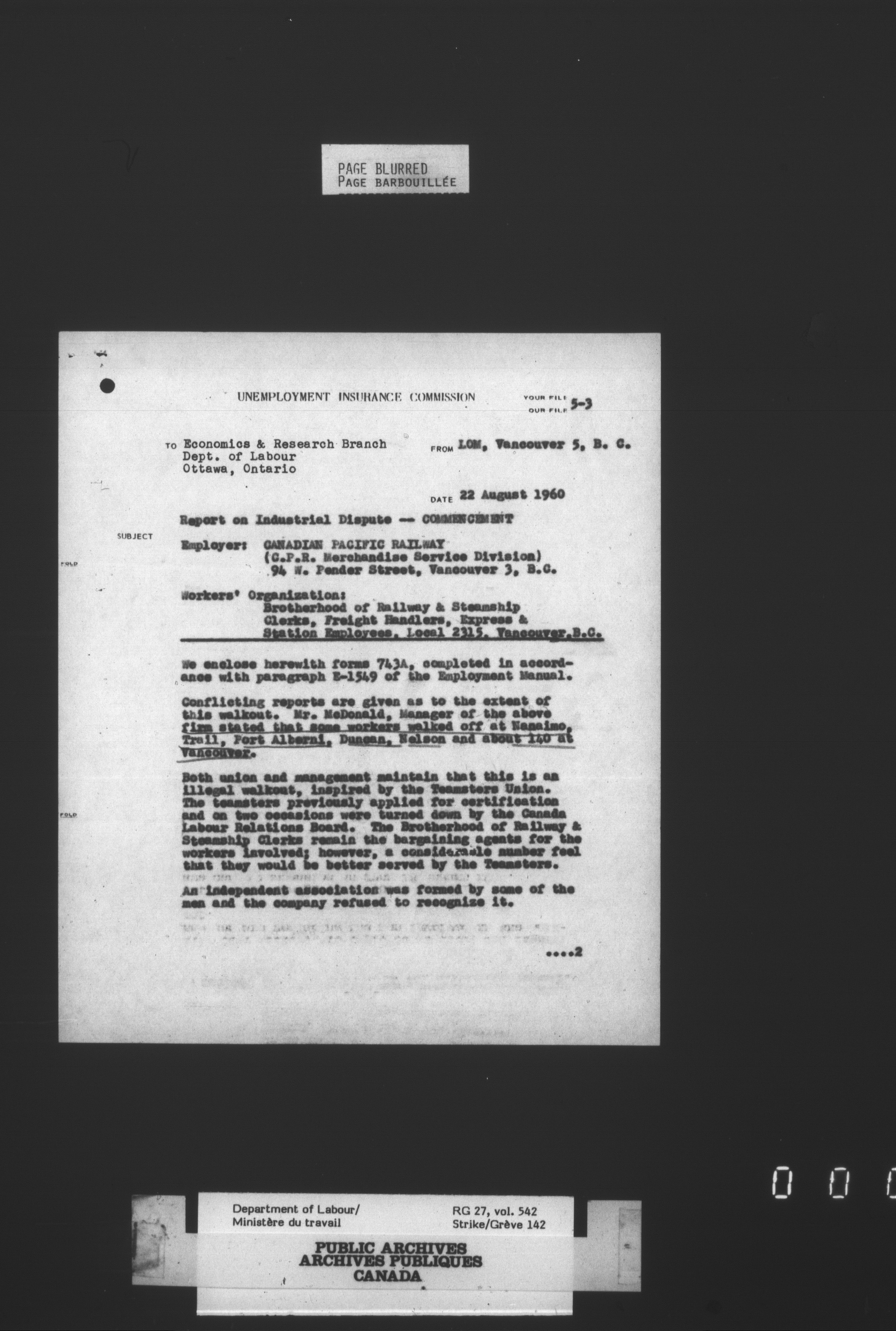 Department of Labour, Economics and Research Branch : Strikes and lockout files - 3402