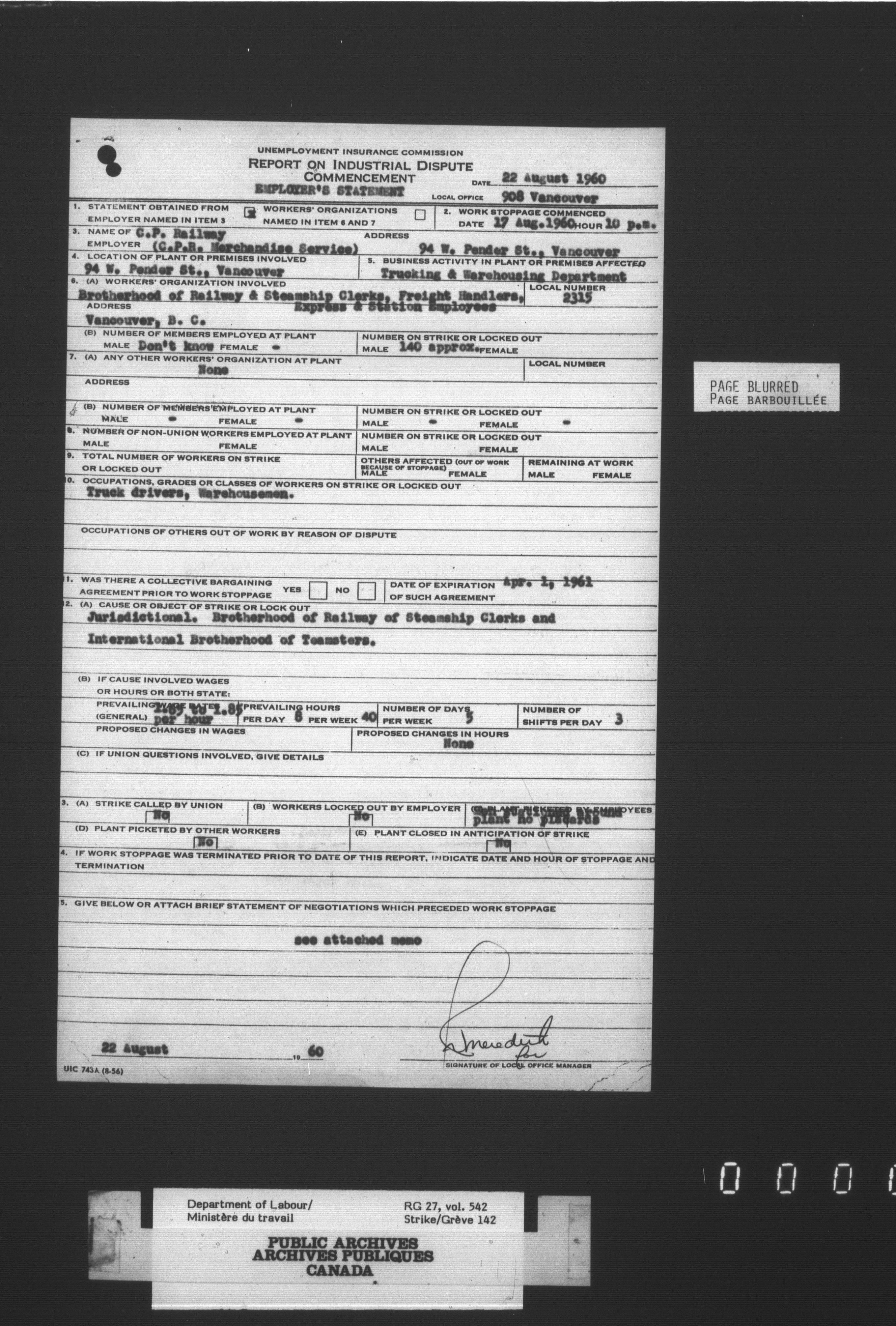 Department of Labour, Economics and Research Branch : Strikes and lockout files - 3402