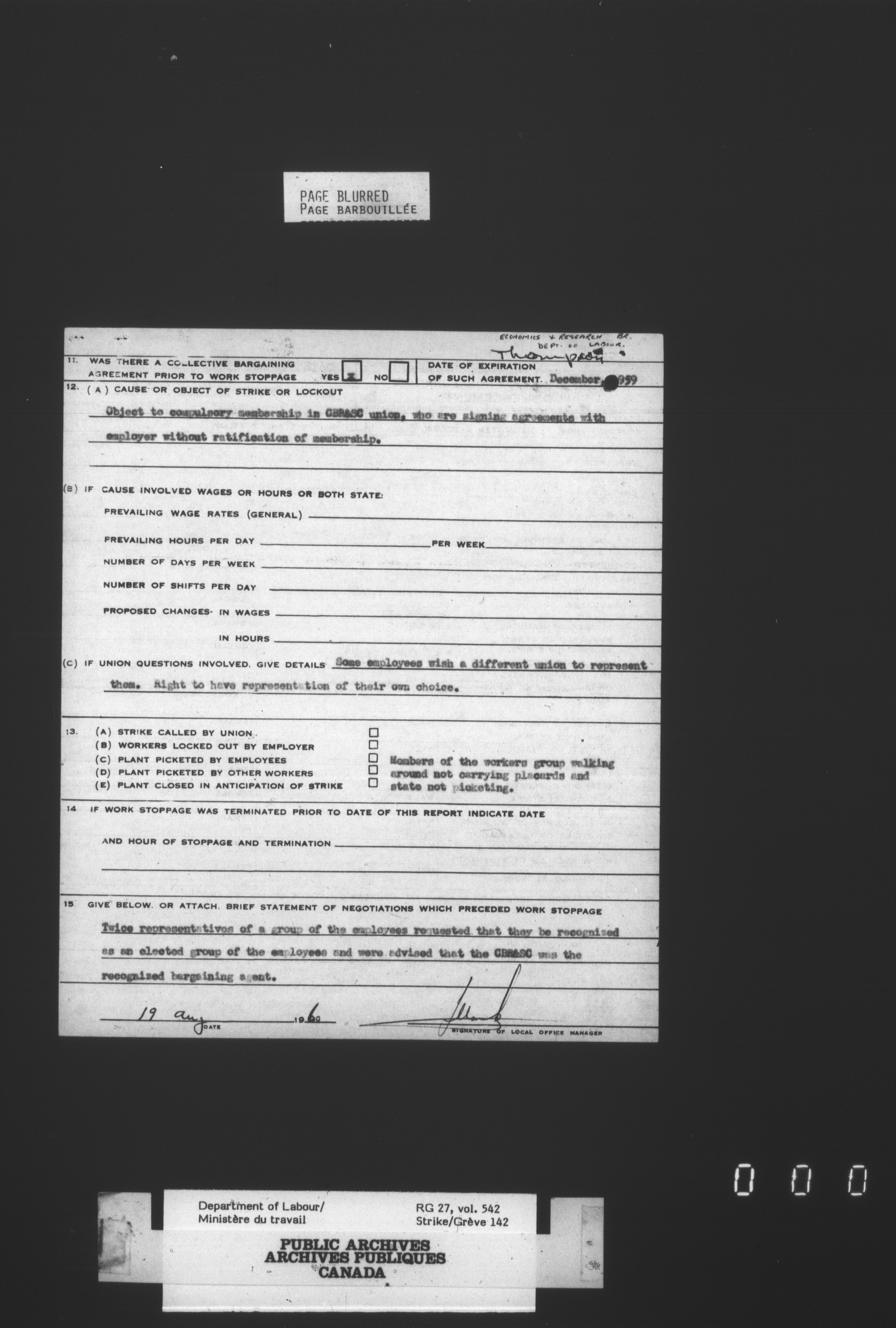 Department of Labour, Economics and Research Branch : Strikes and lockout files - 3402