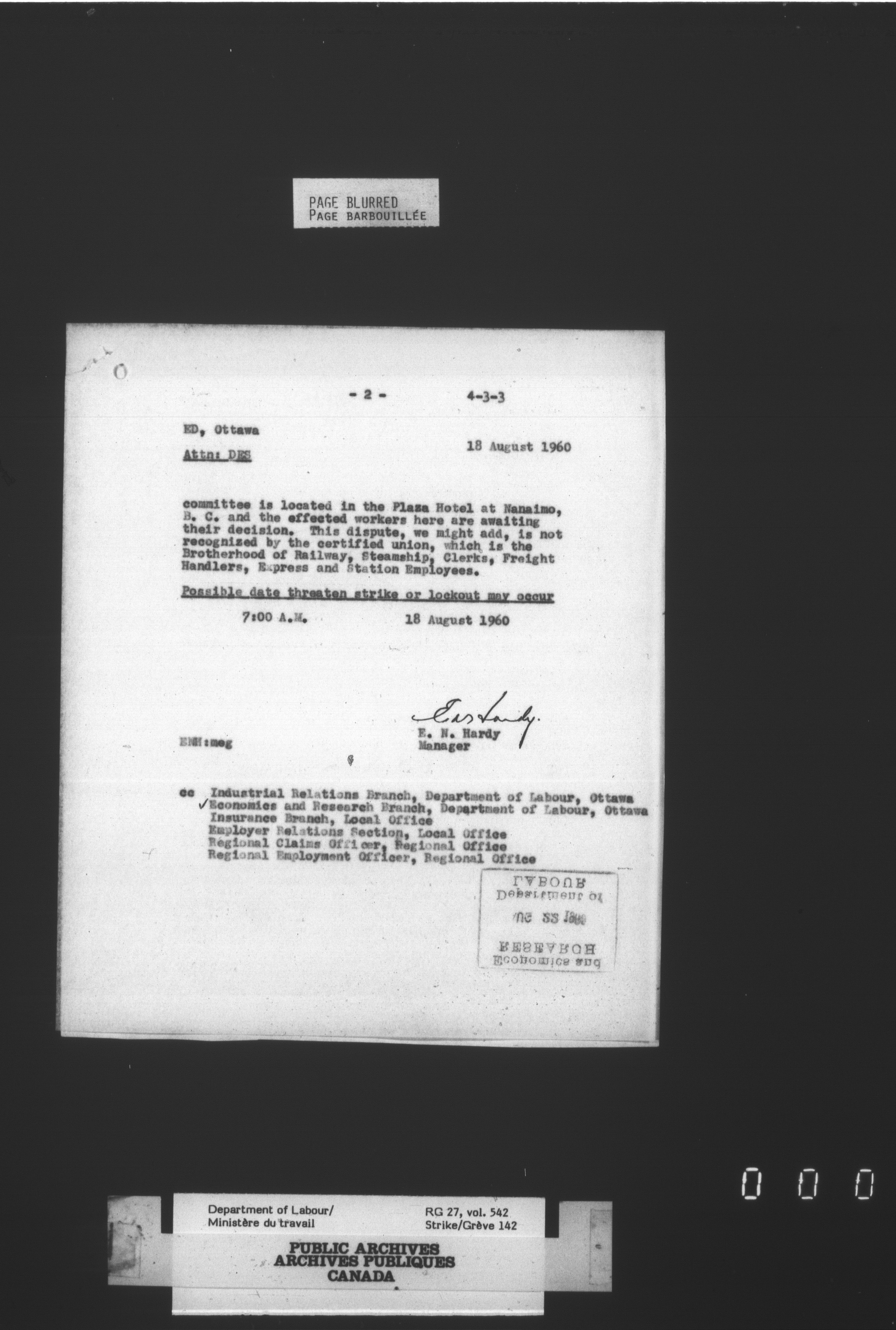 Department of Labour, Economics and Research Branch : Strikes and lockout files - 3402