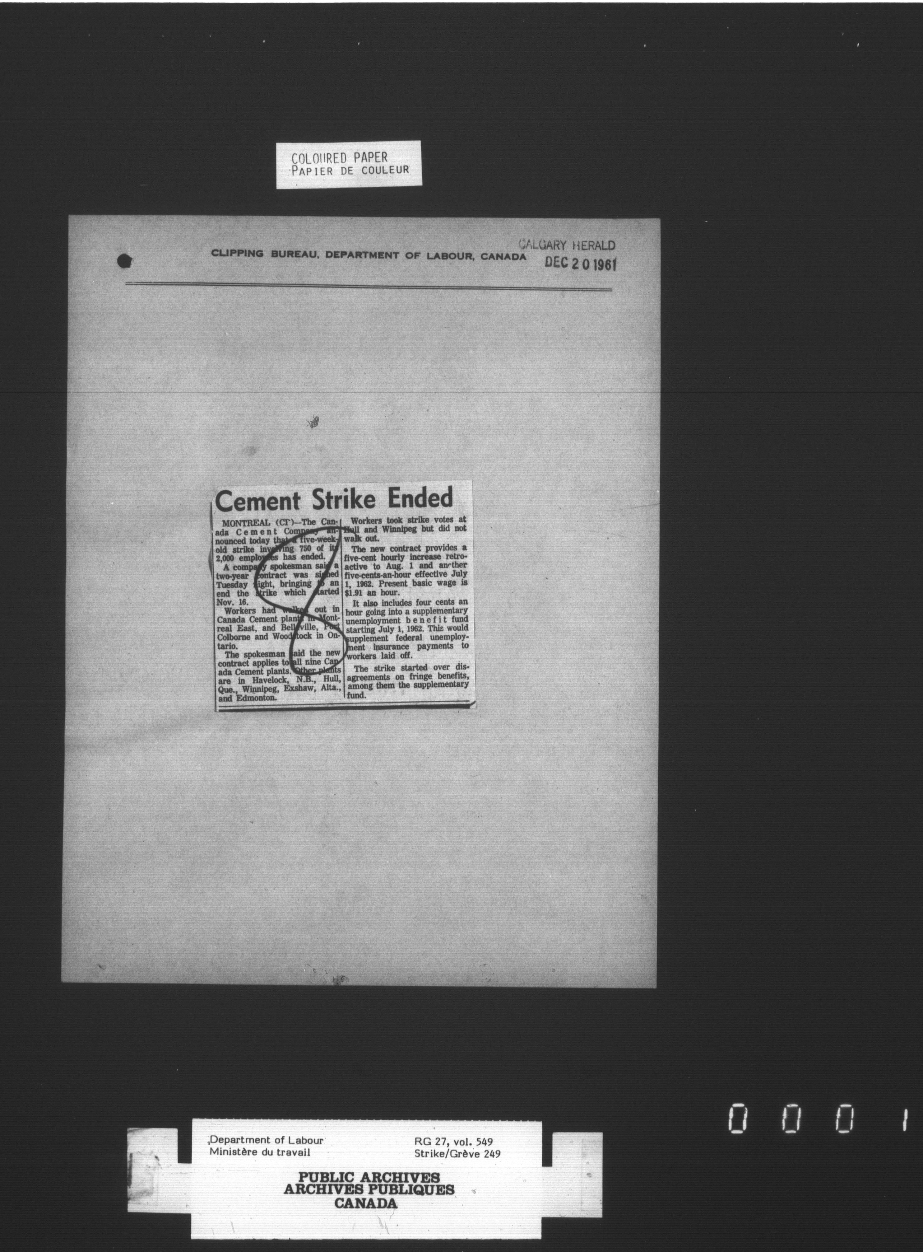 Department of Labour, Economics and Research Branch : Strikes and lockout files - 3405