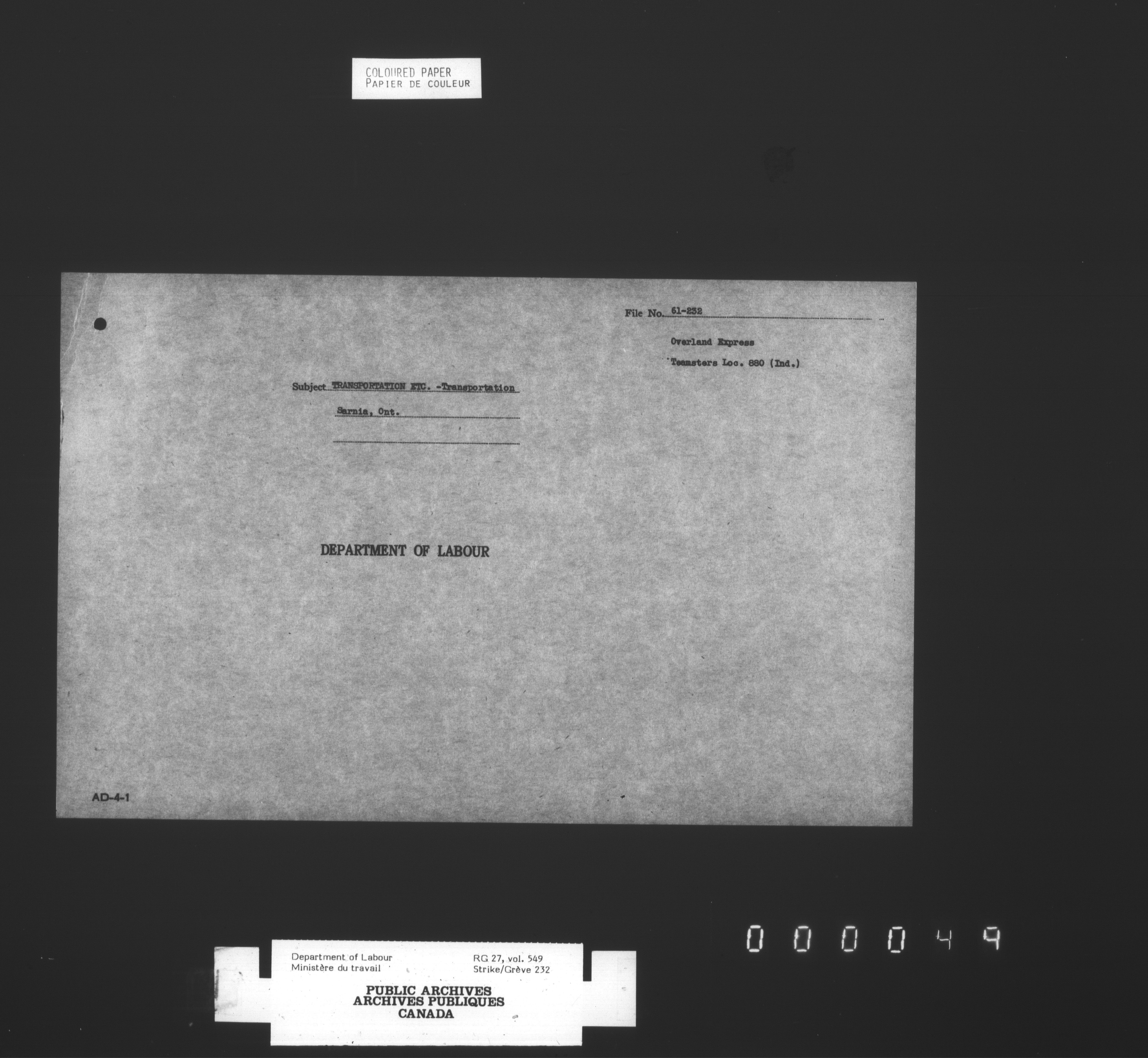 Department of Labour, Economics and Research Branch : Strikes and lockout files - 3405