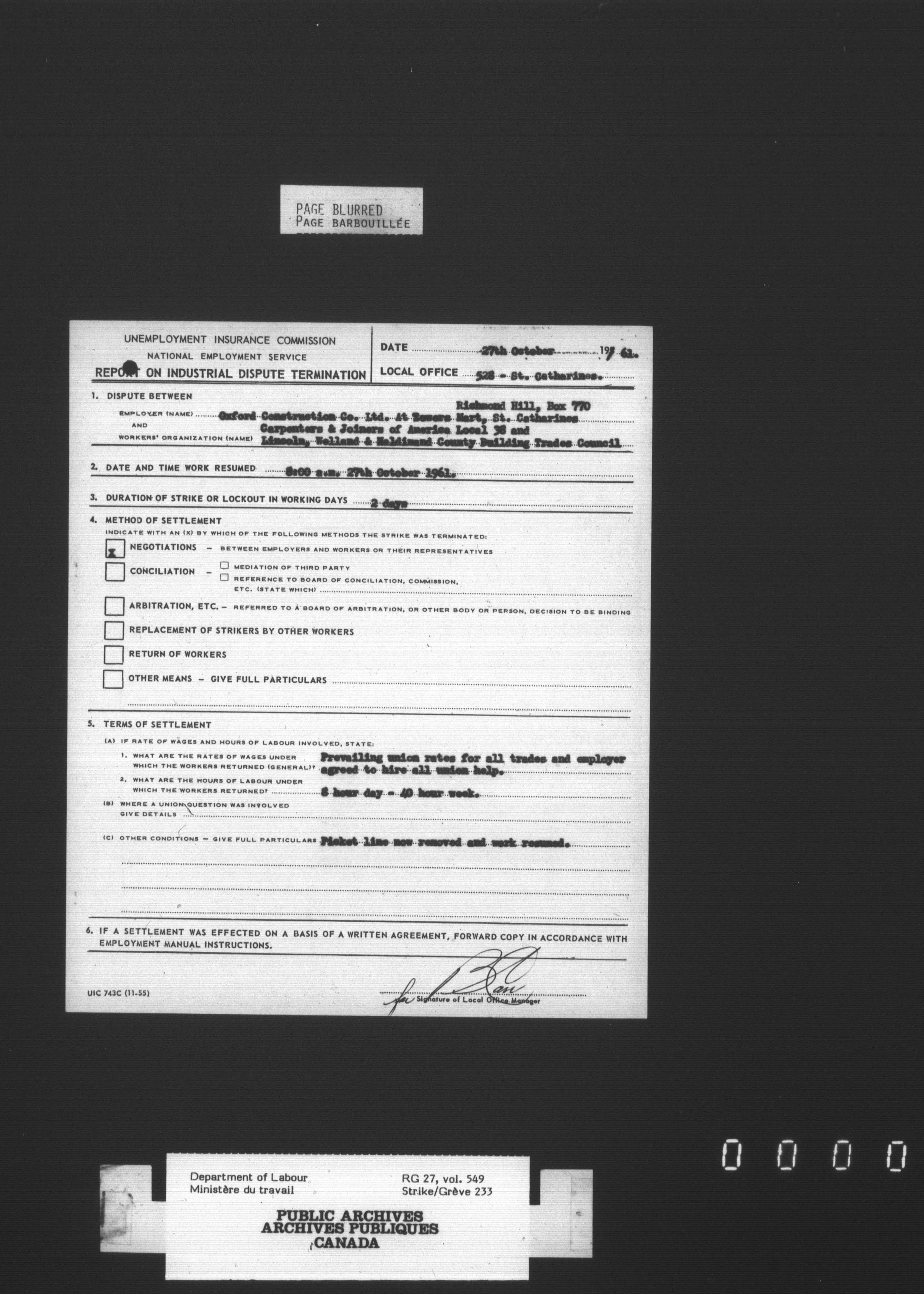 Department of Labour, Economics and Research Branch : Strikes and lockout files - 3405