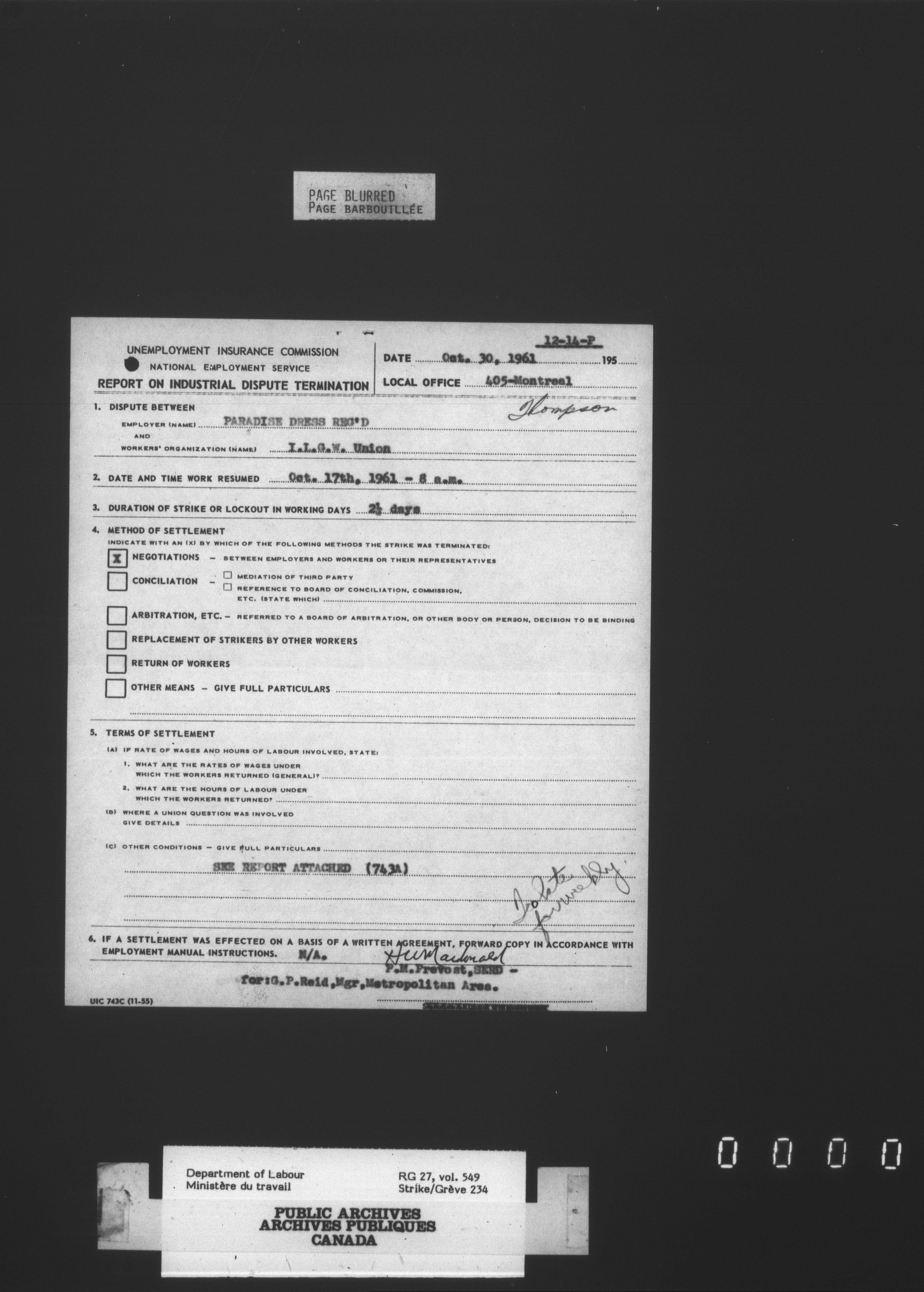 Department of Labour, Economics and Research Branch : Strikes and lockout files - 3405