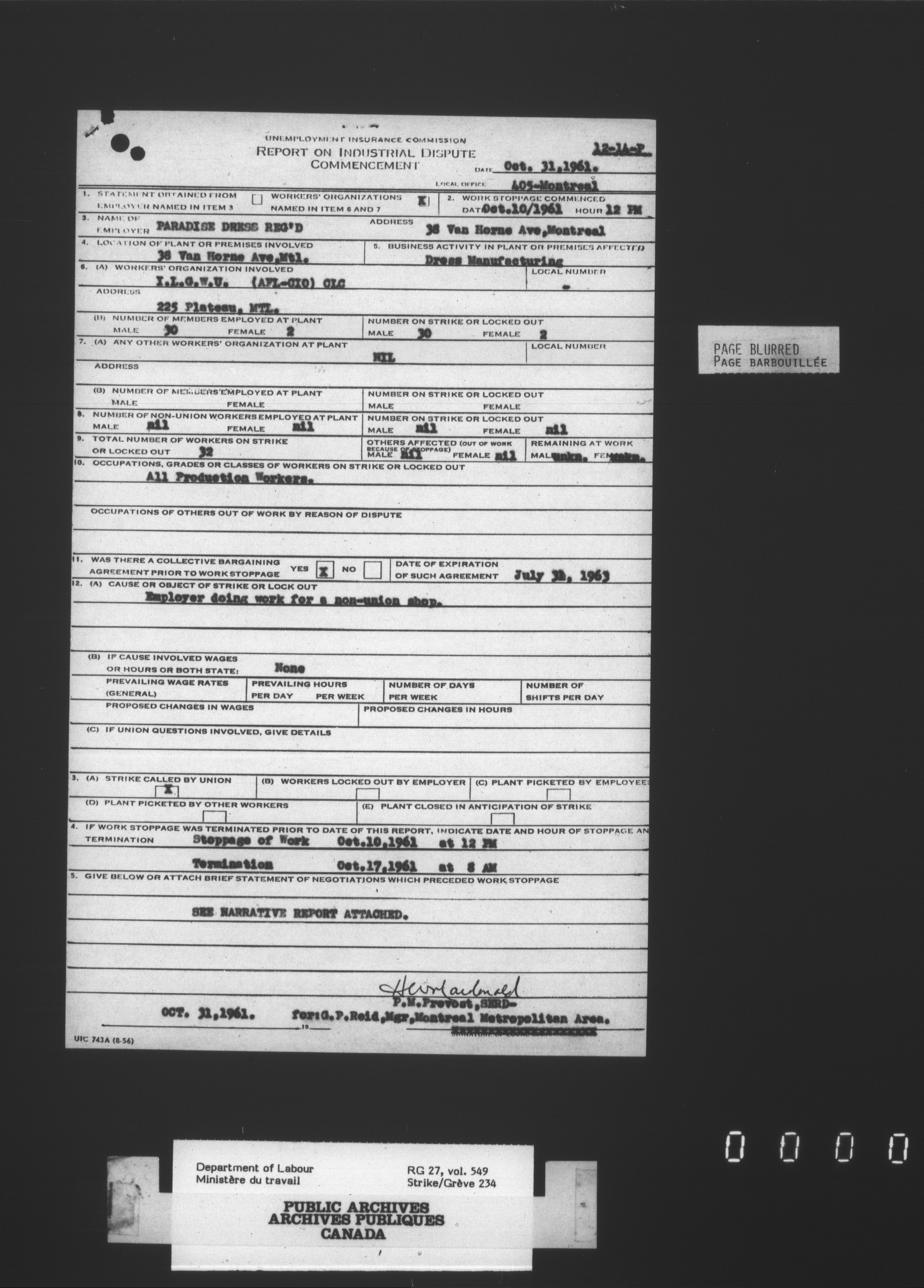 Department of Labour, Economics and Research Branch : Strikes and lockout files - 3405