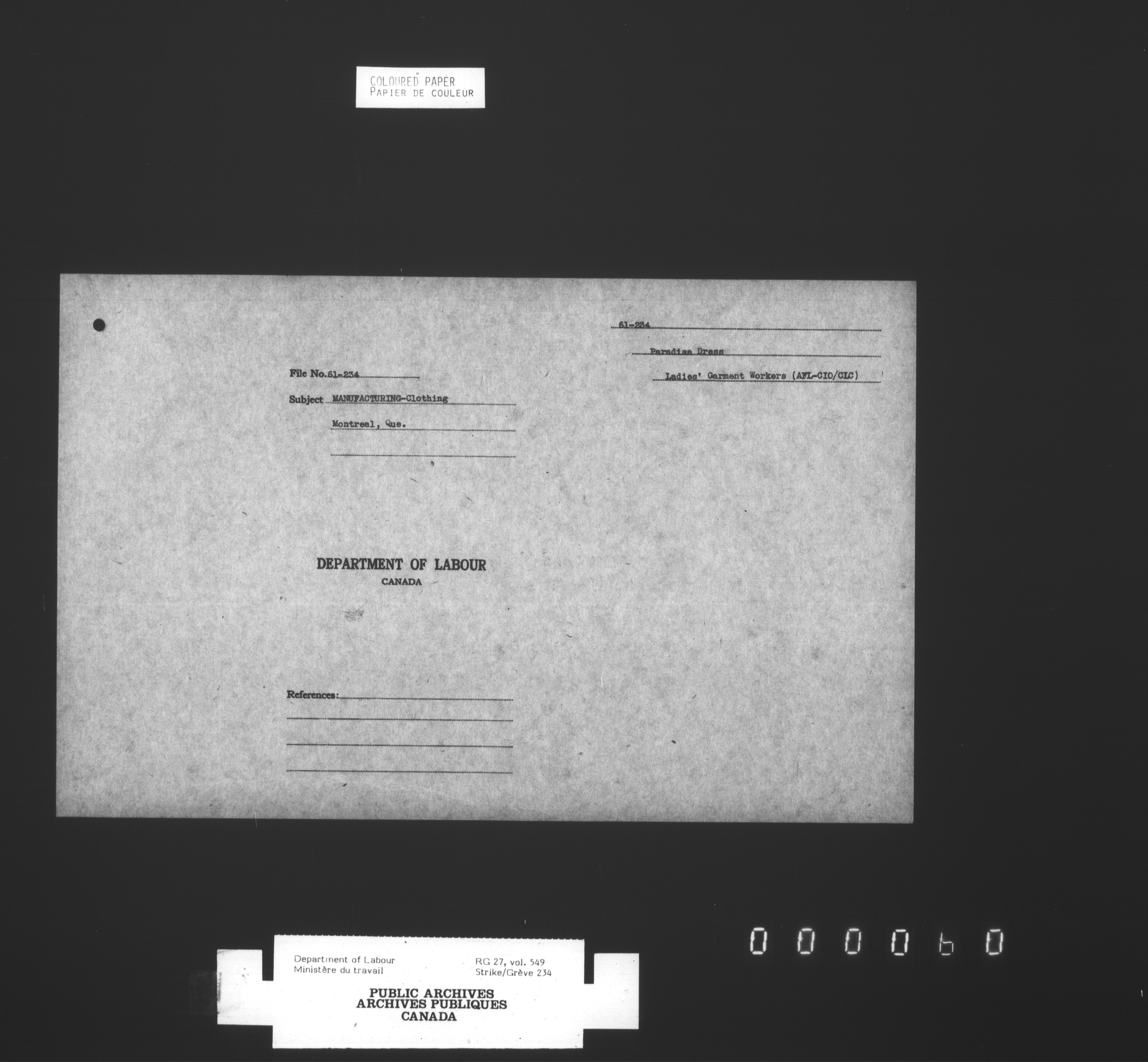 Department of Labour, Economics and Research Branch : Strikes and lockout files - 3405