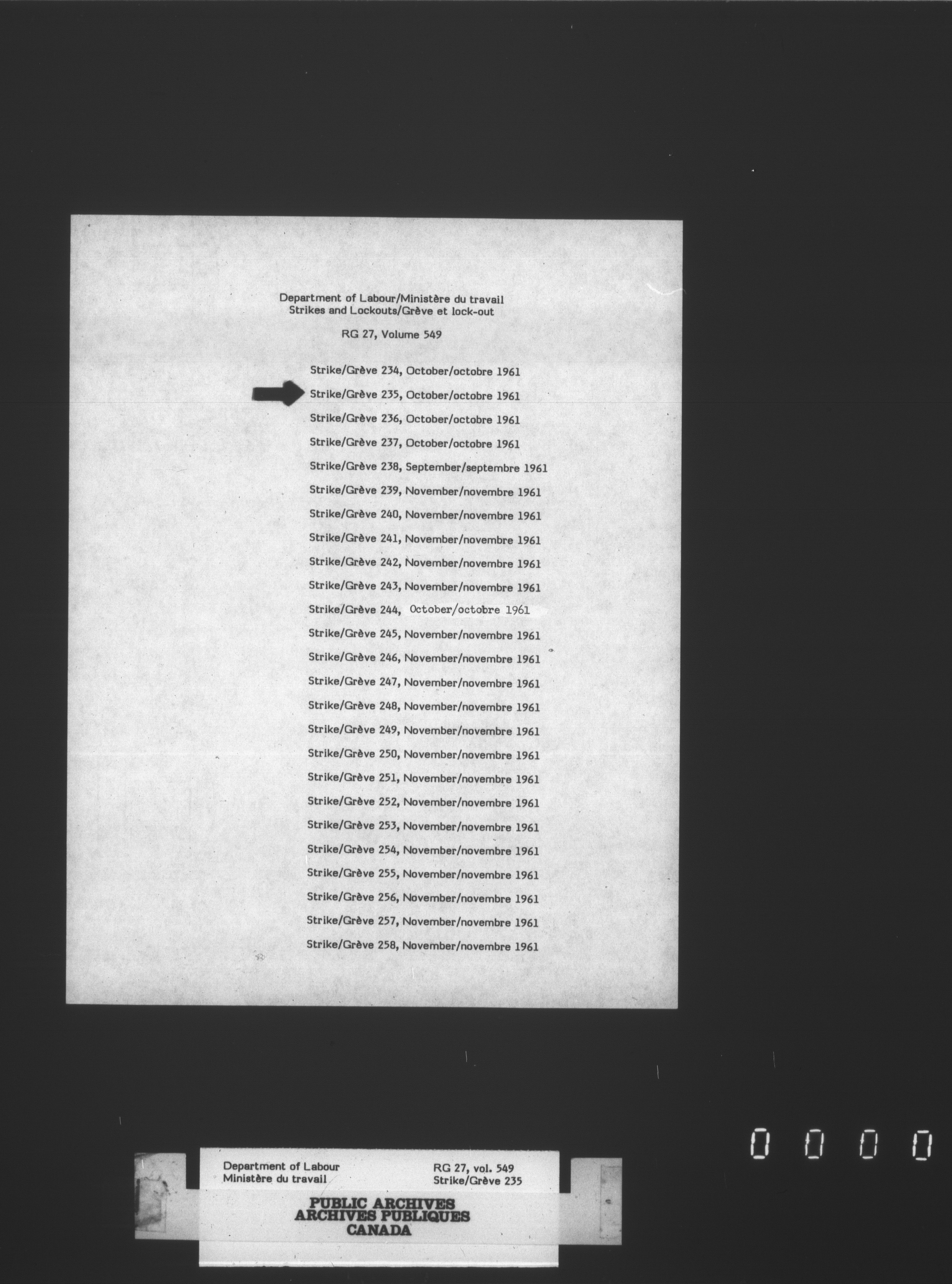 Department of Labour, Economics and Research Branch : Strikes and lockout files - 3405