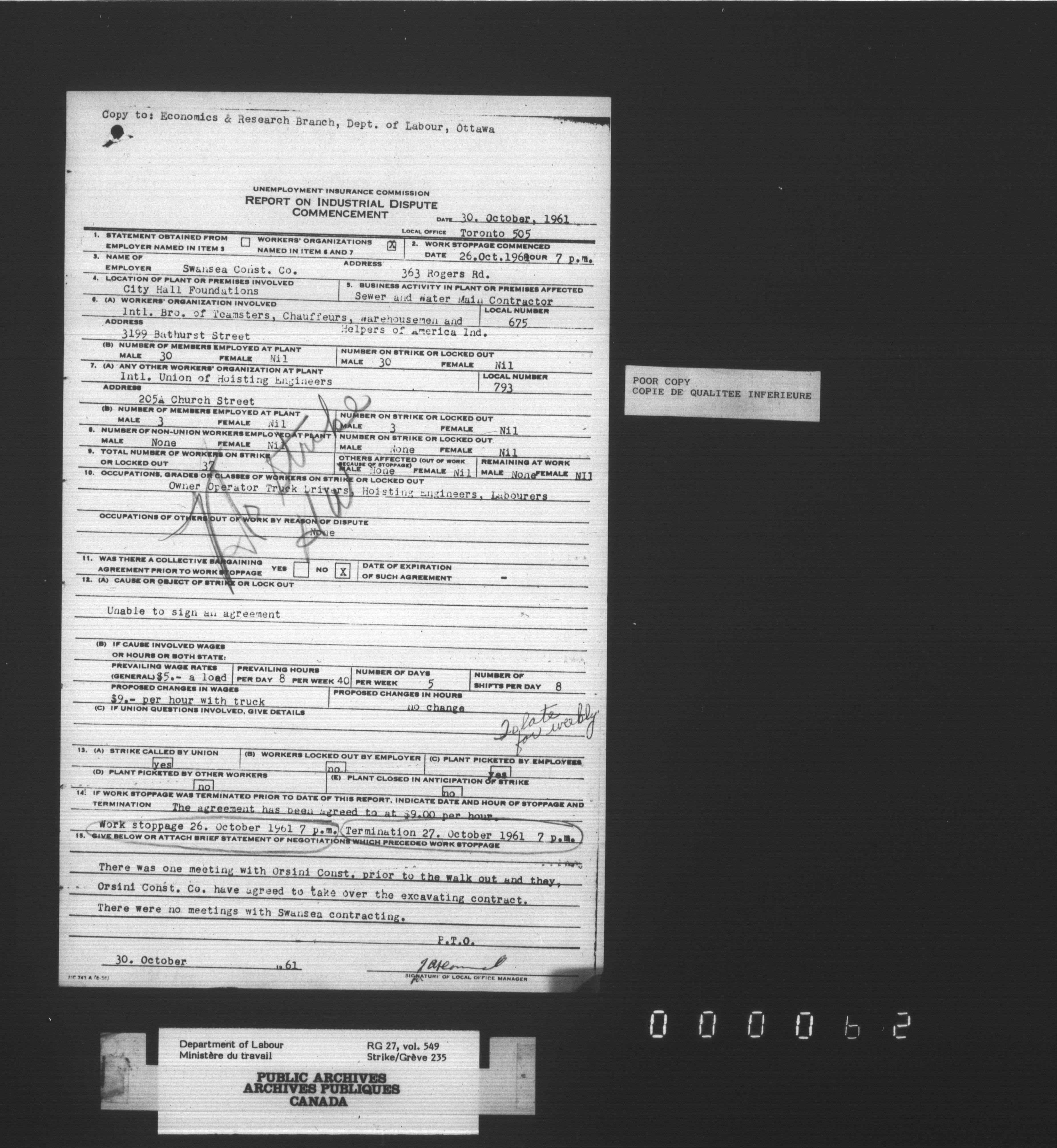 Department of Labour, Economics and Research Branch : Strikes and lockout files - 3405