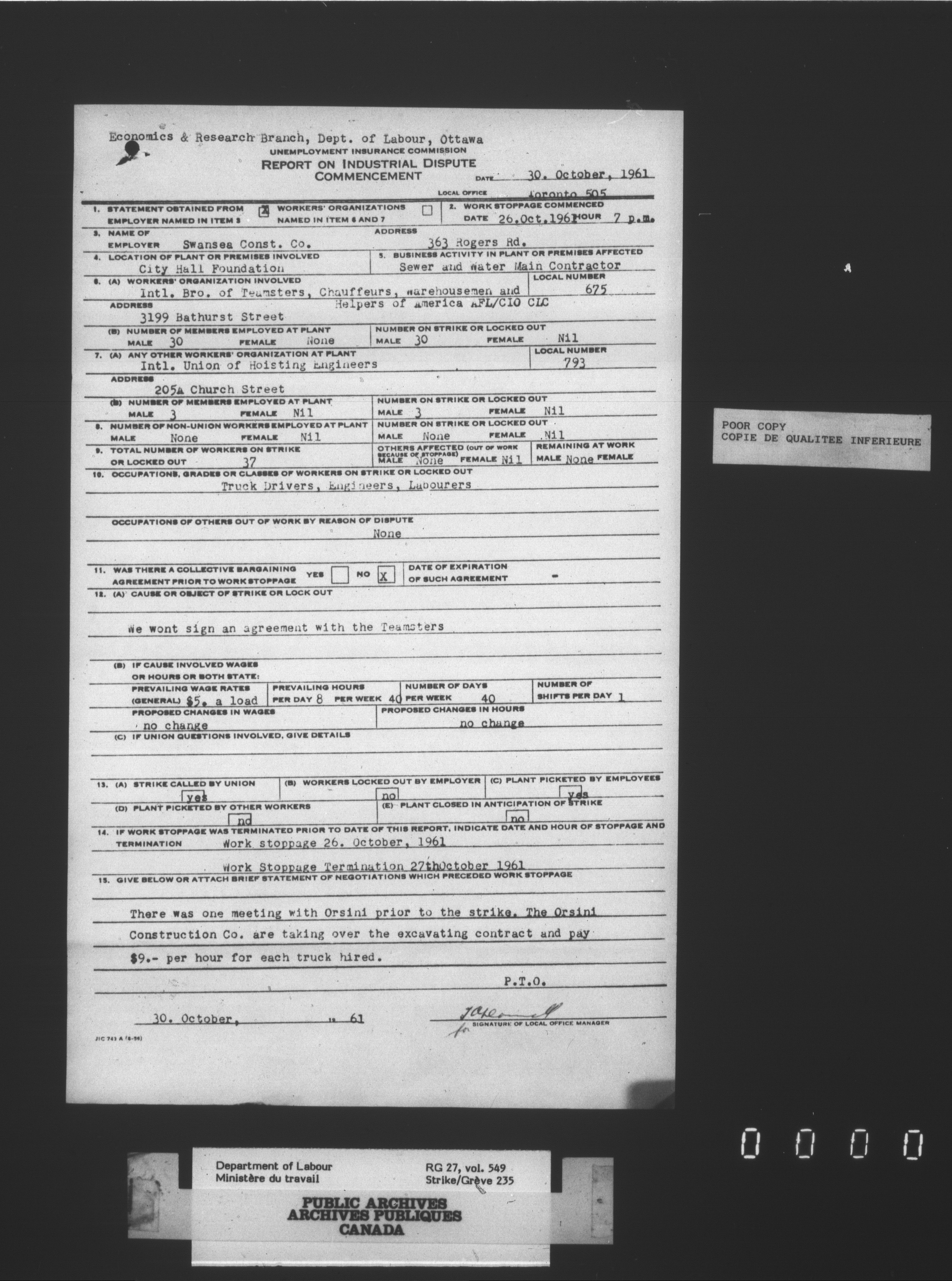 Department of Labour, Economics and Research Branch : Strikes and lockout files - 3405