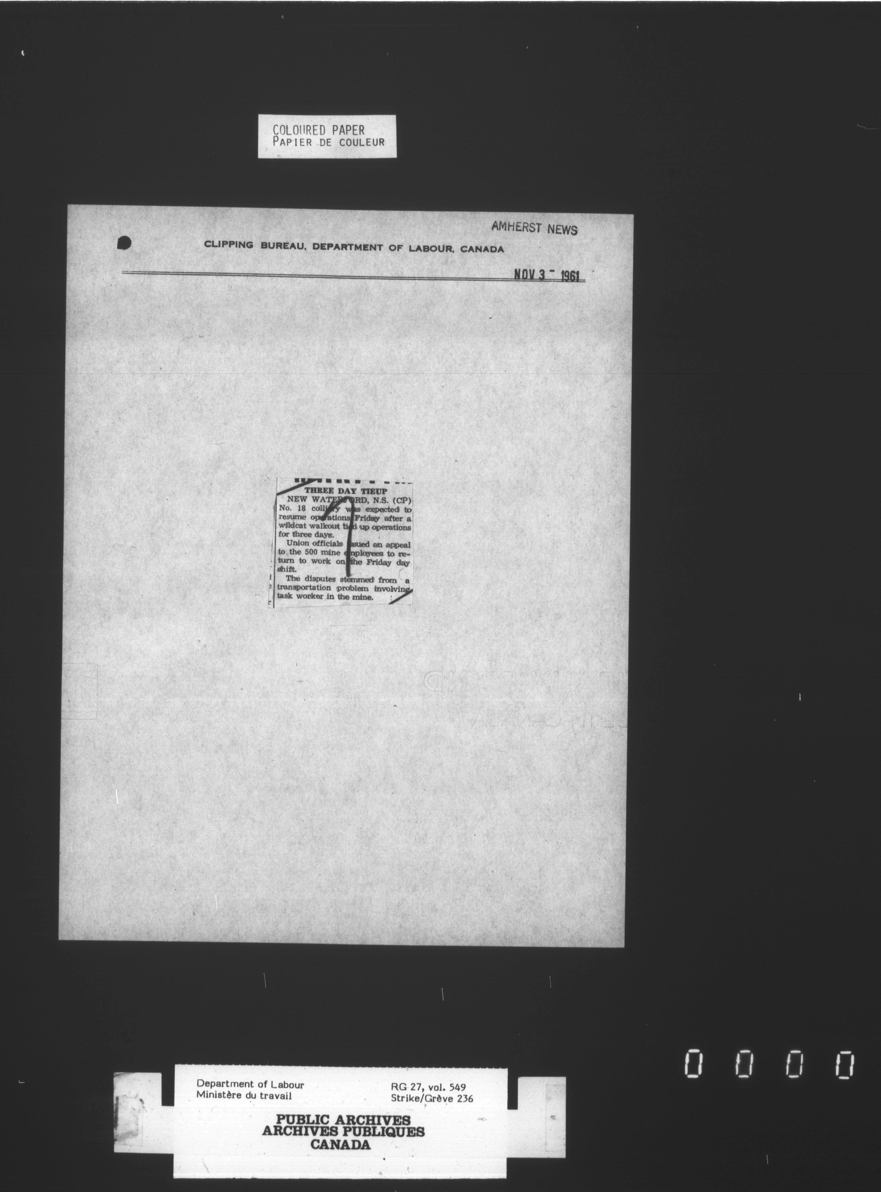 Department of Labour, Economics and Research Branch : Strikes and lockout files - 3405