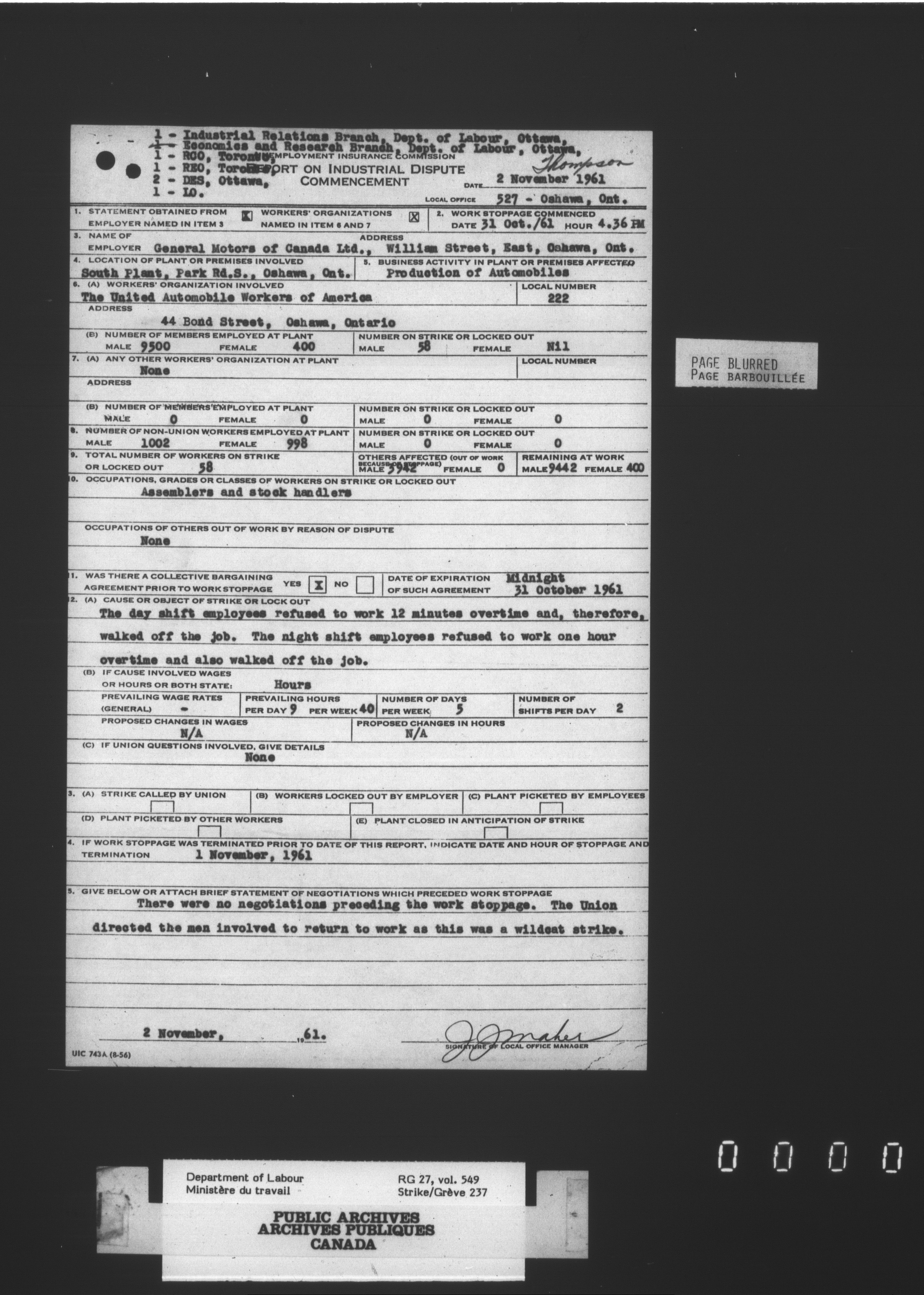 Department of Labour, Economics and Research Branch : Strikes and lockout files - 3405