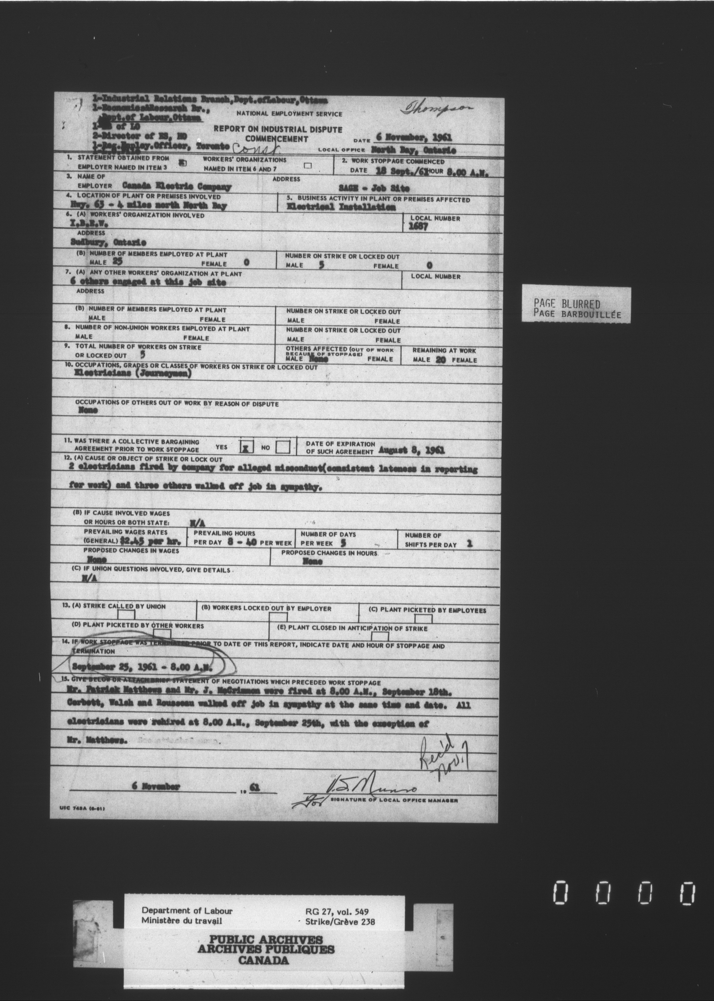 Department of Labour, Economics and Research Branch : Strikes and lockout files - 3405