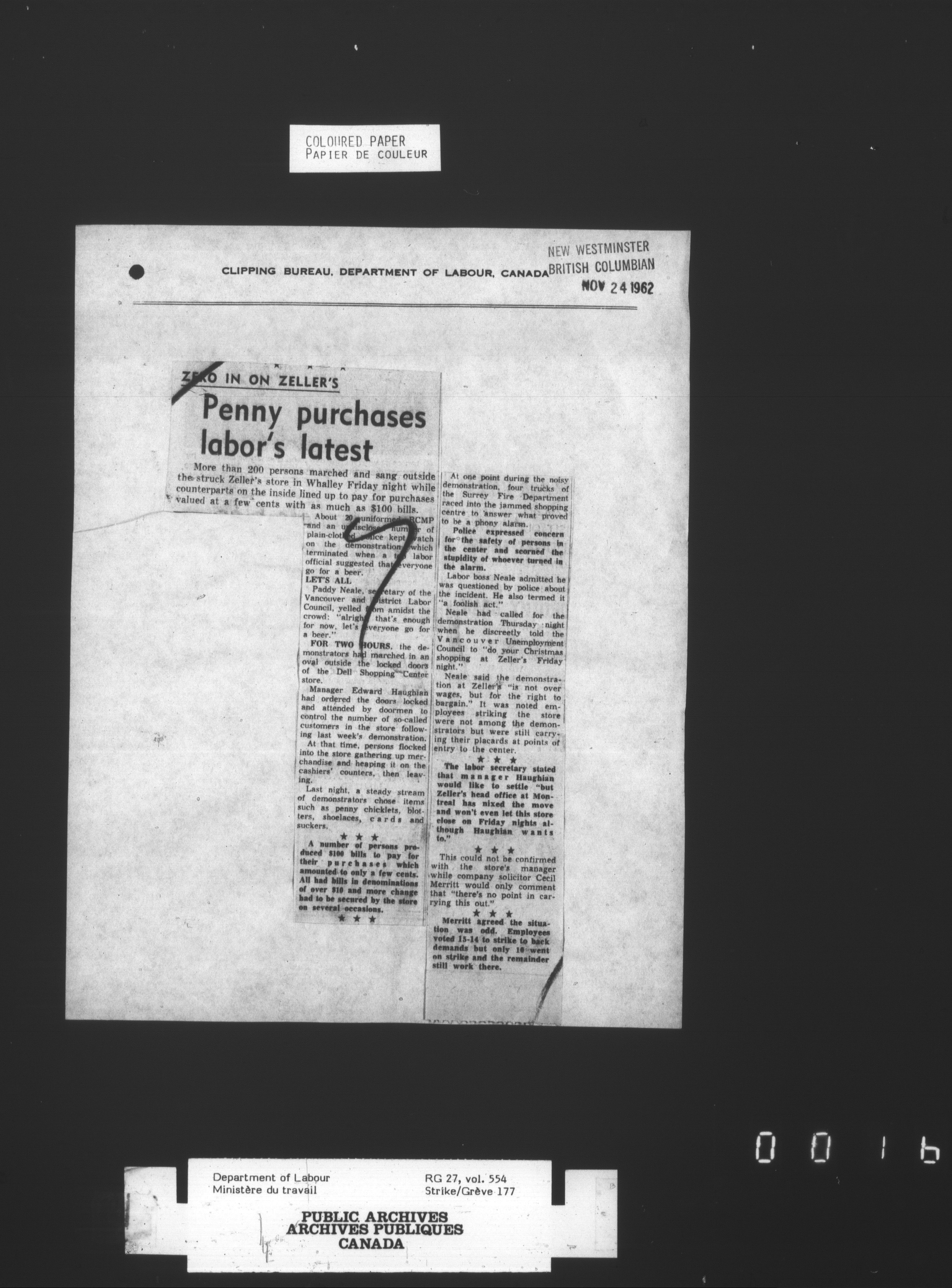 Department of Labour, Economics and Research Branch : Strikes and lockout files - 3406