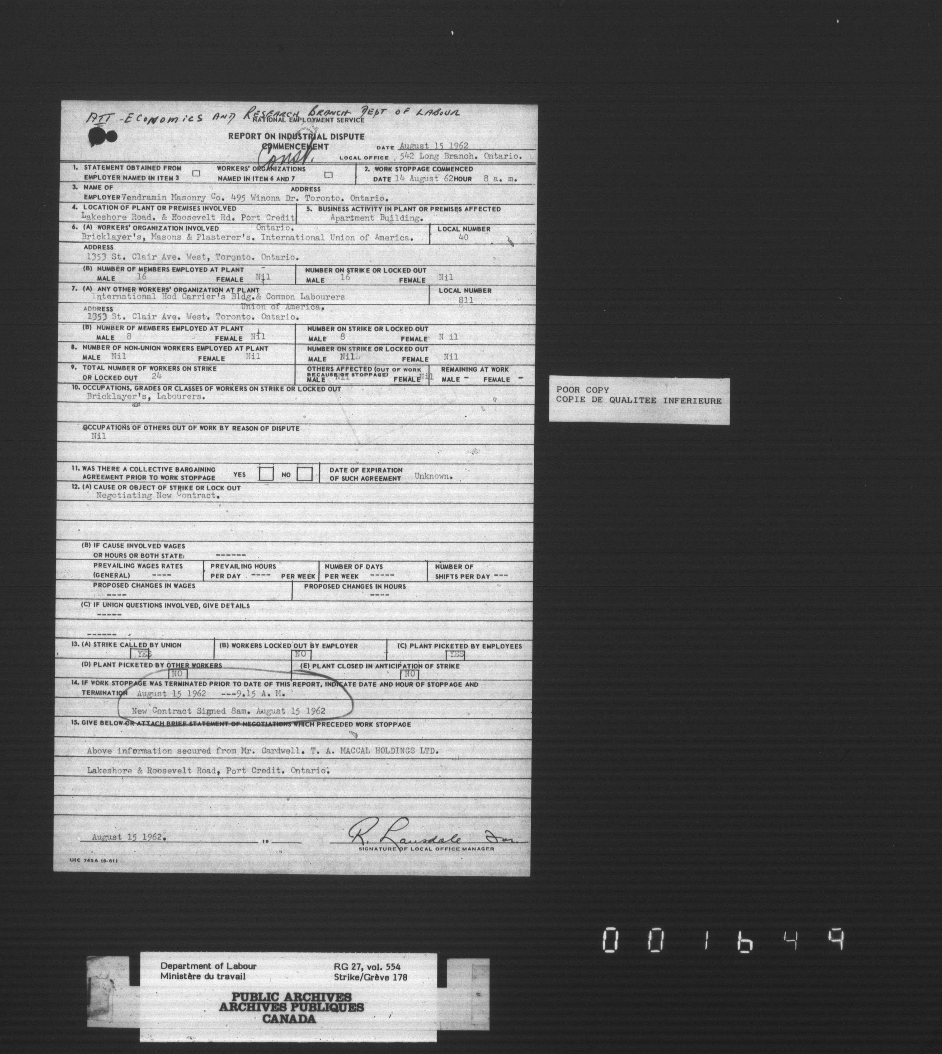 Department of Labour, Economics and Research Branch : Strikes and lockout files - 3406