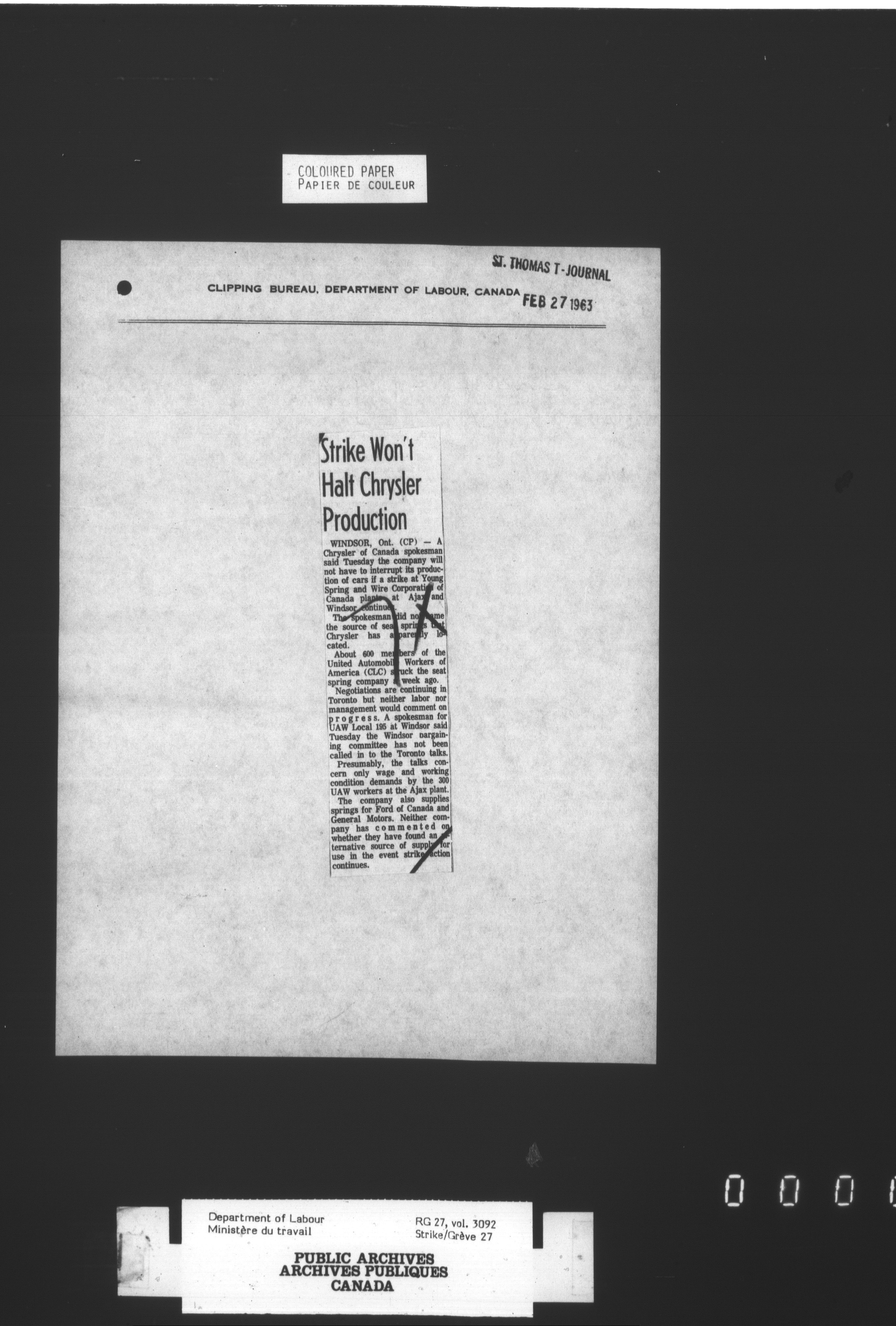 Department of Labour, Economics and Research Branch : Strikes and lockout files : T-3408