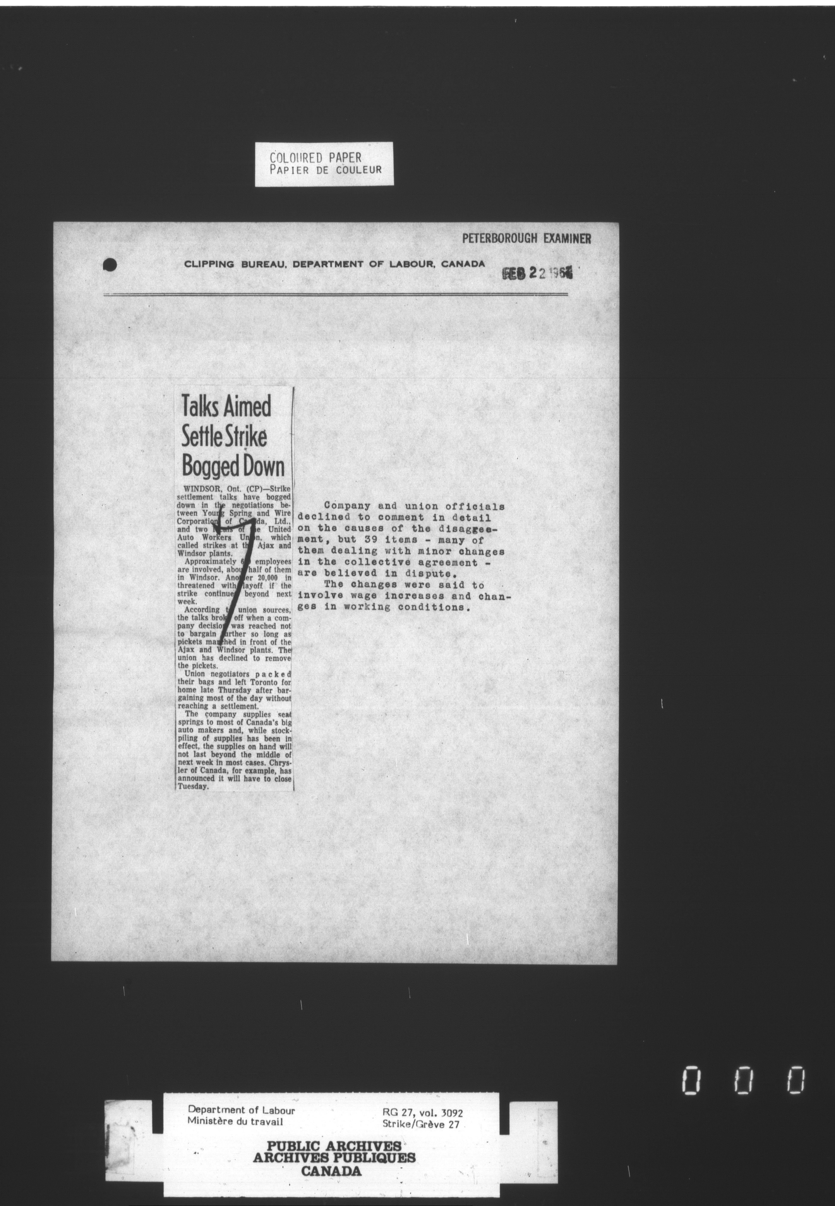Department of Labour, Economics and Research Branch : Strikes and lockout files - 3408