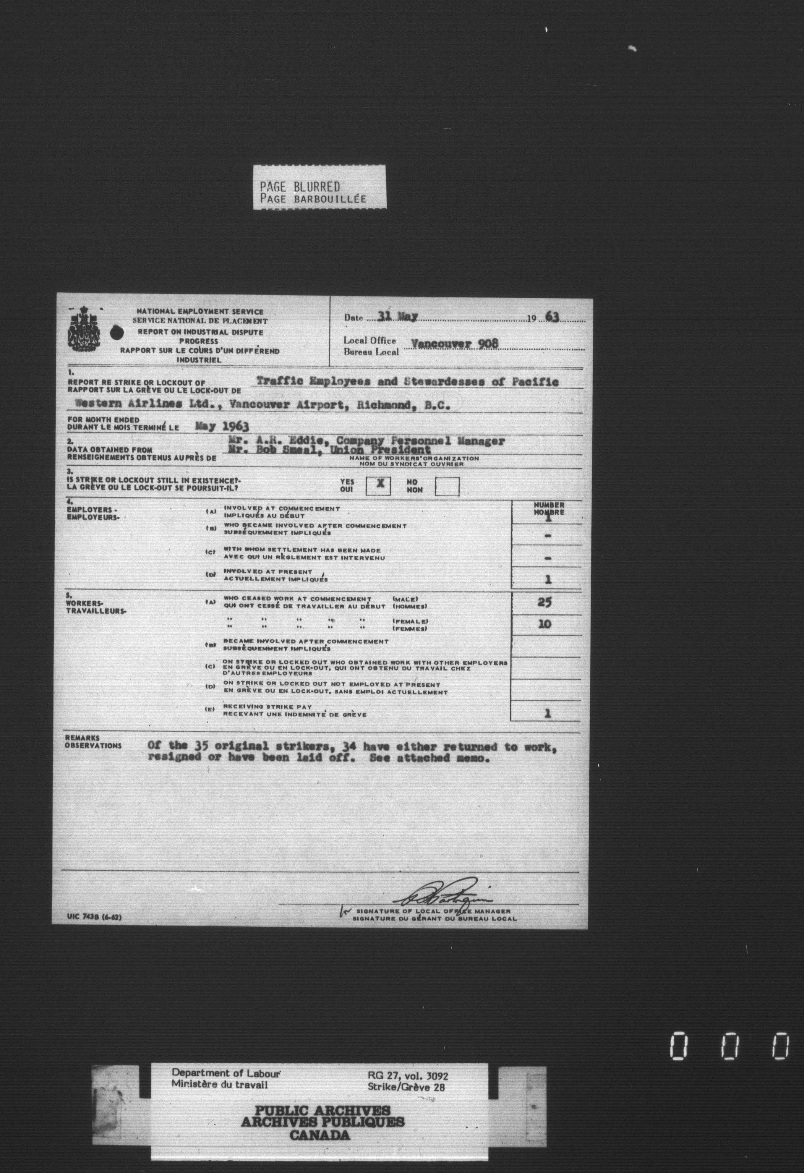 Department of Labour, Economics and Research Branch : Strikes and lockout files - 3408