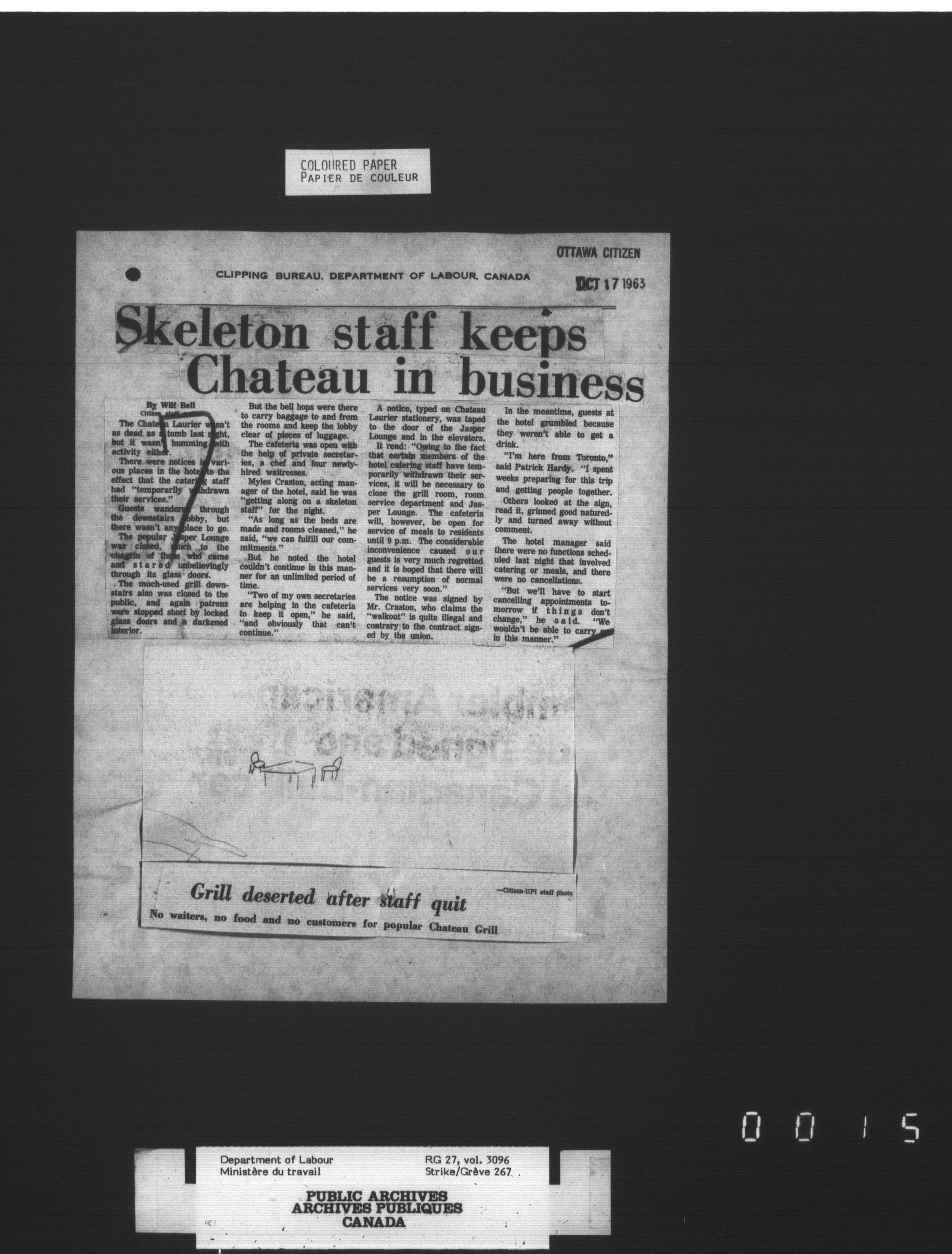 Department of Labour, Economics and Research Branch : Strikes and lockout files : T-3409