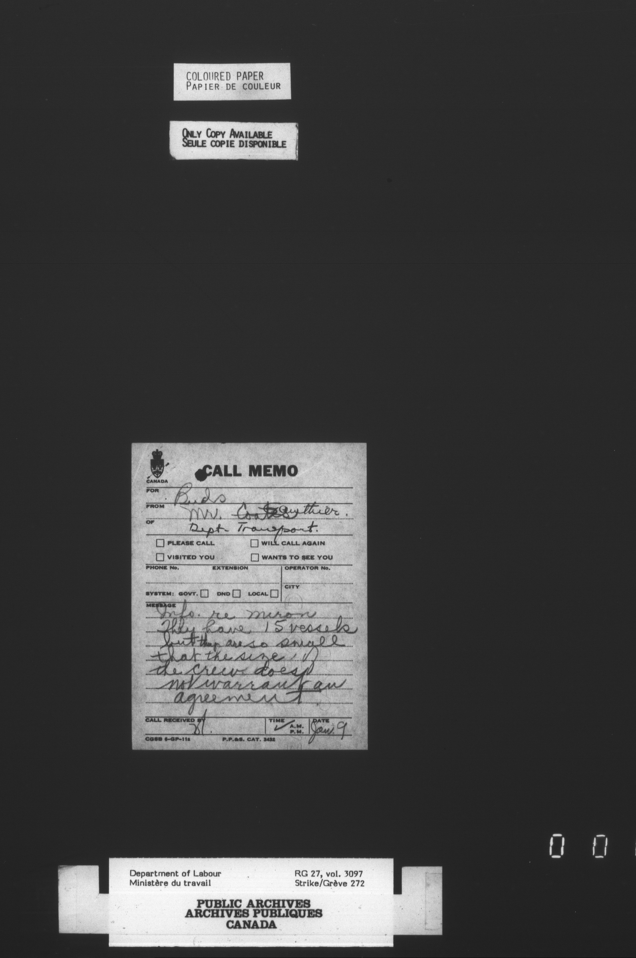 Department of Labour, Economics and Research Branch : Strikes and lockout files - 3410