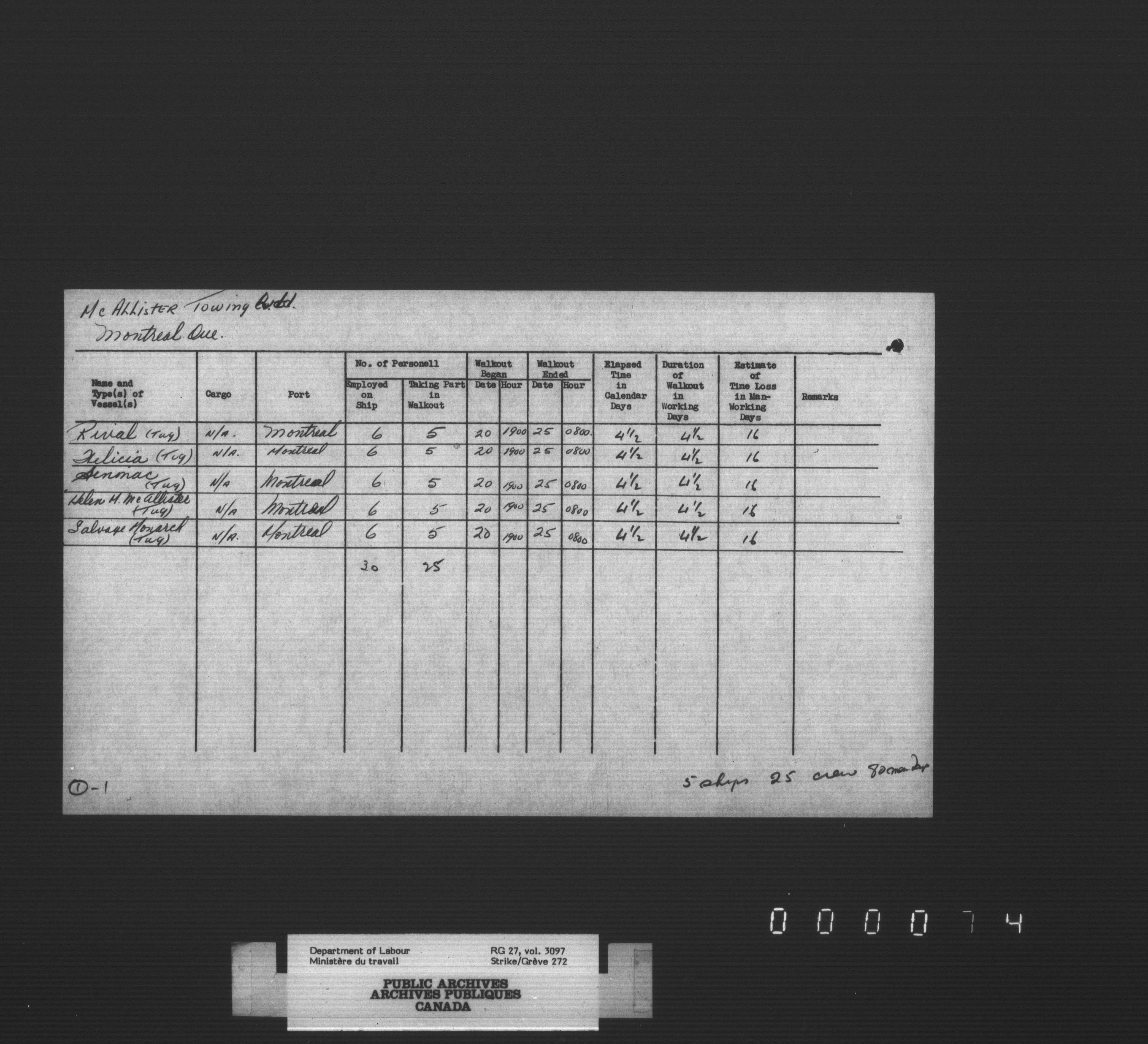 Department of Labour, Economics and Research Branch : Strikes and lockout files - 3410