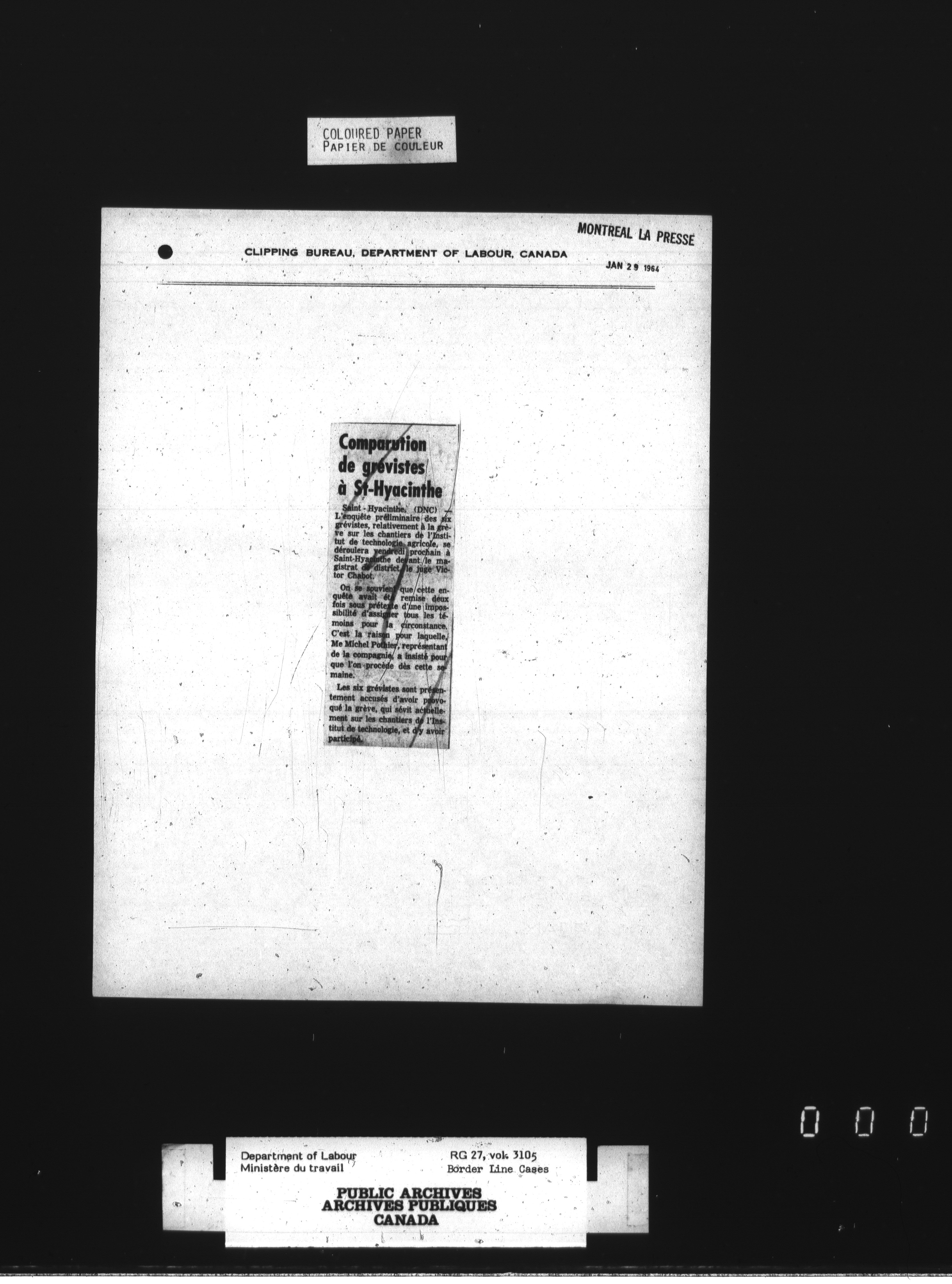 Department of Labour, Economics and Research Branch : Strikes and lockout files - 3414