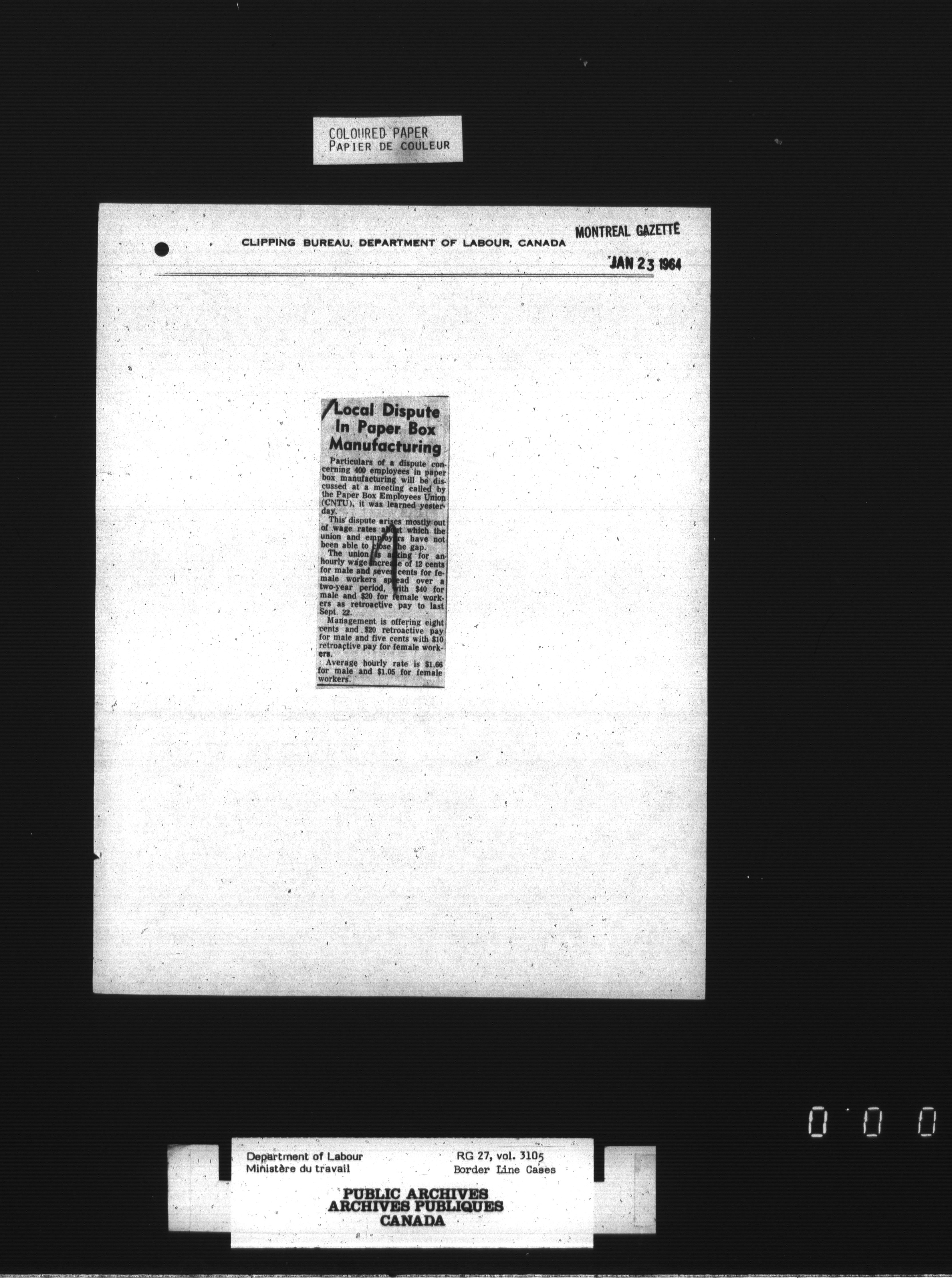 Department of Labour, Economics and Research Branch : Strikes and lockout files - 3414