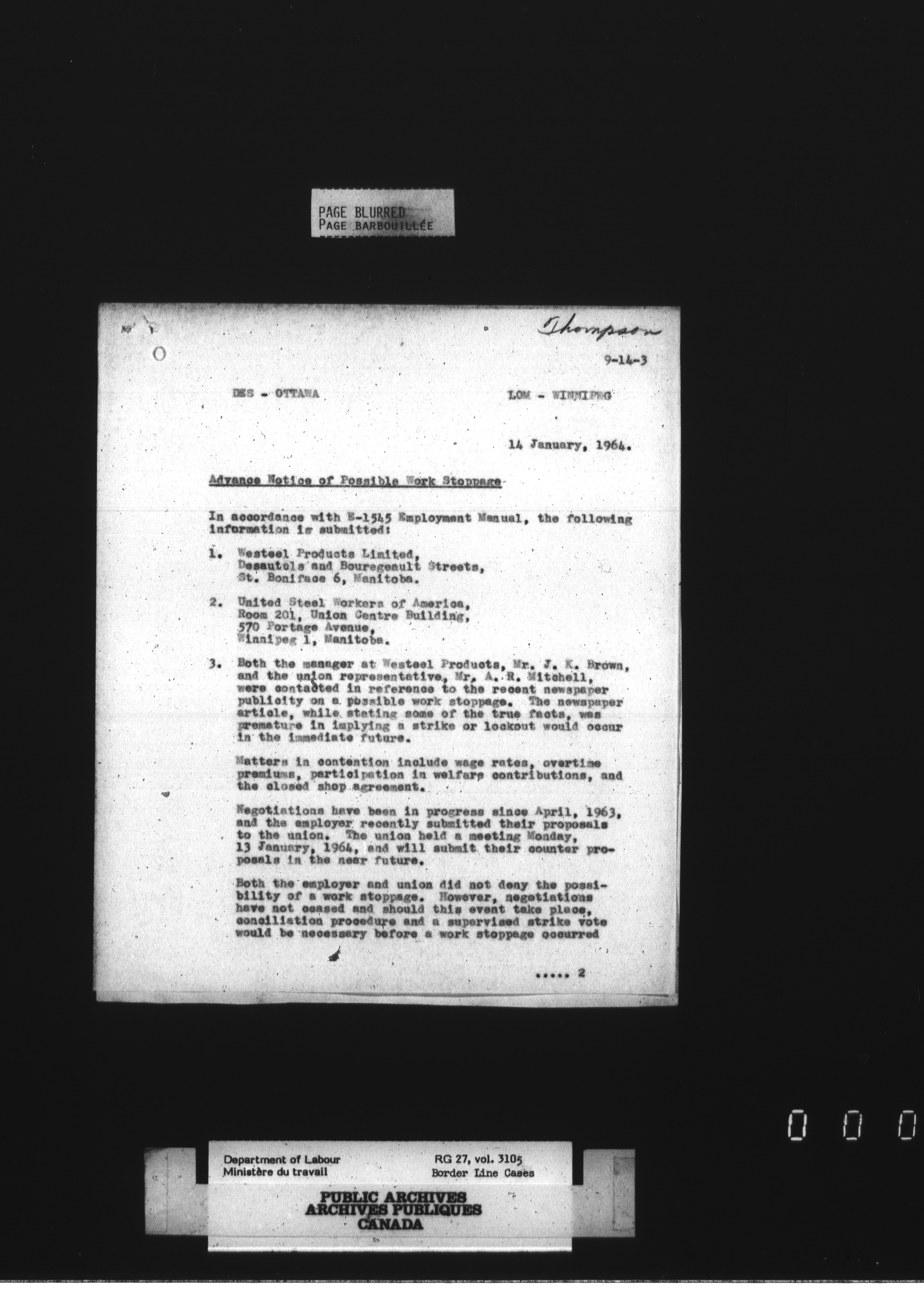 Department of Labour, Economics and Research Branch : Strikes and lockout files : T-3414
