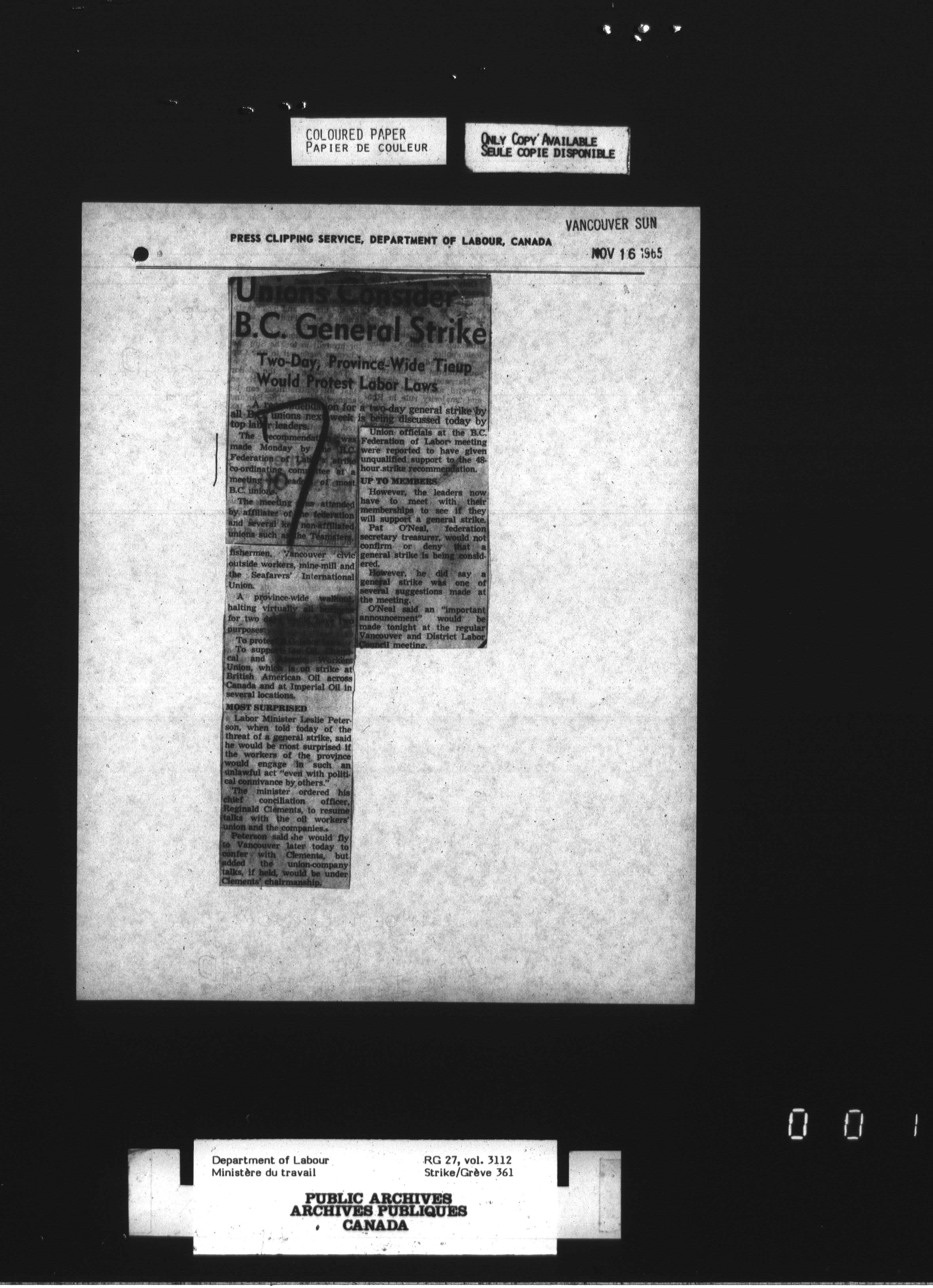 Department of Labour, Economics and Research Branch : Strikes and lockout files : T-3416