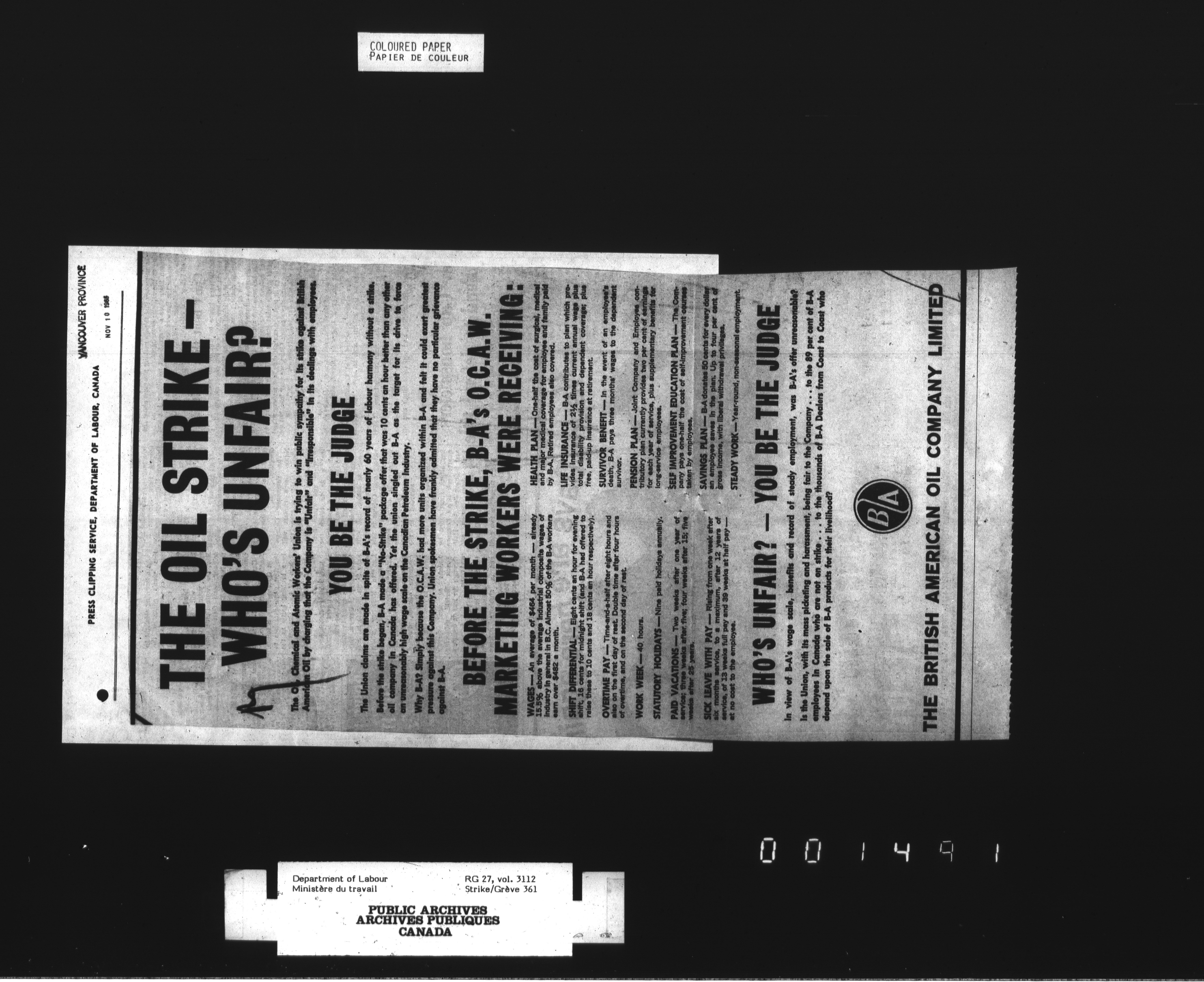 Department of Labour, Economics and Research Branch : Strikes and lockout files : T-3416