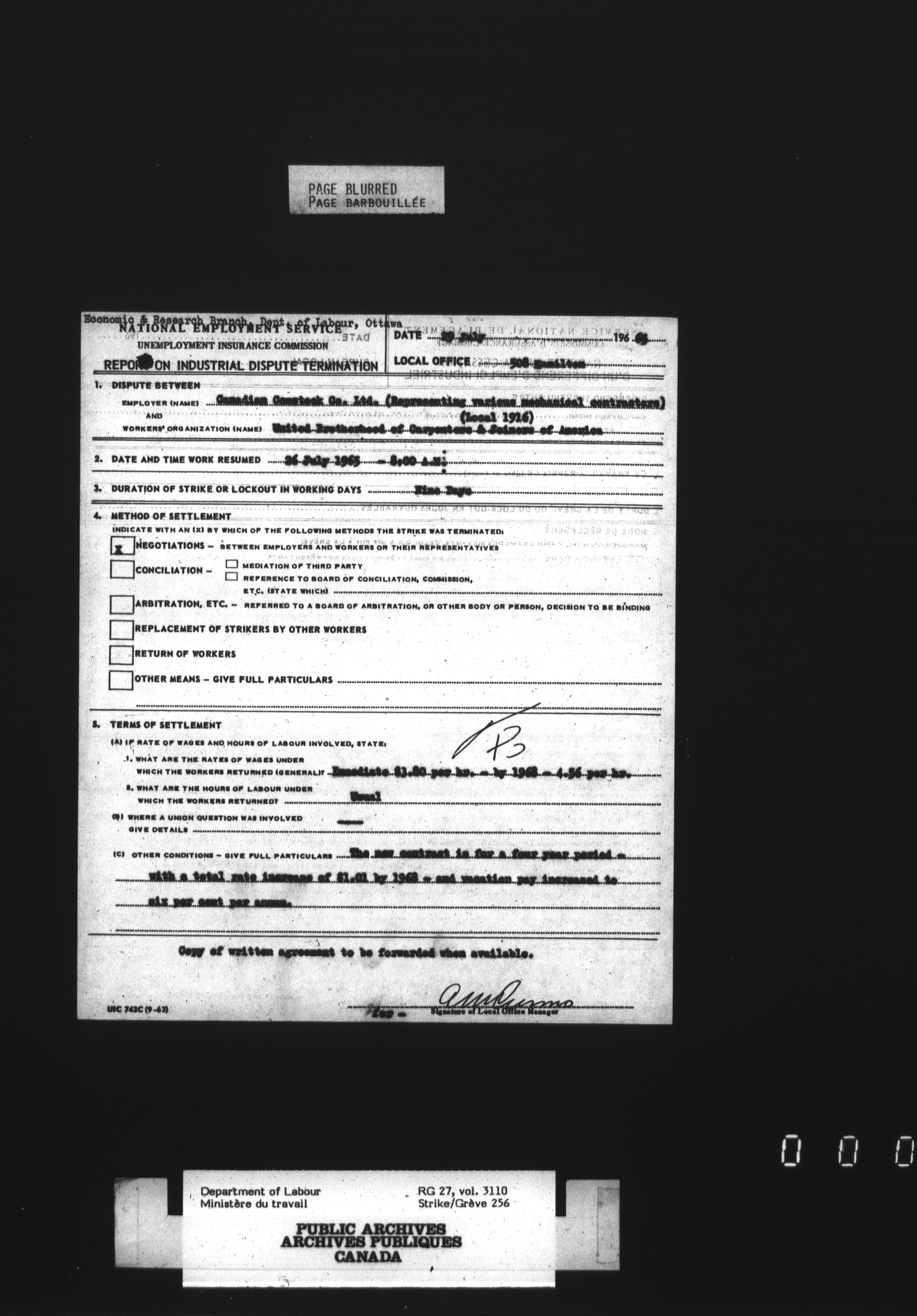 Department of Labour, Economics and Research Branch : Strikes and lockout files - 3416