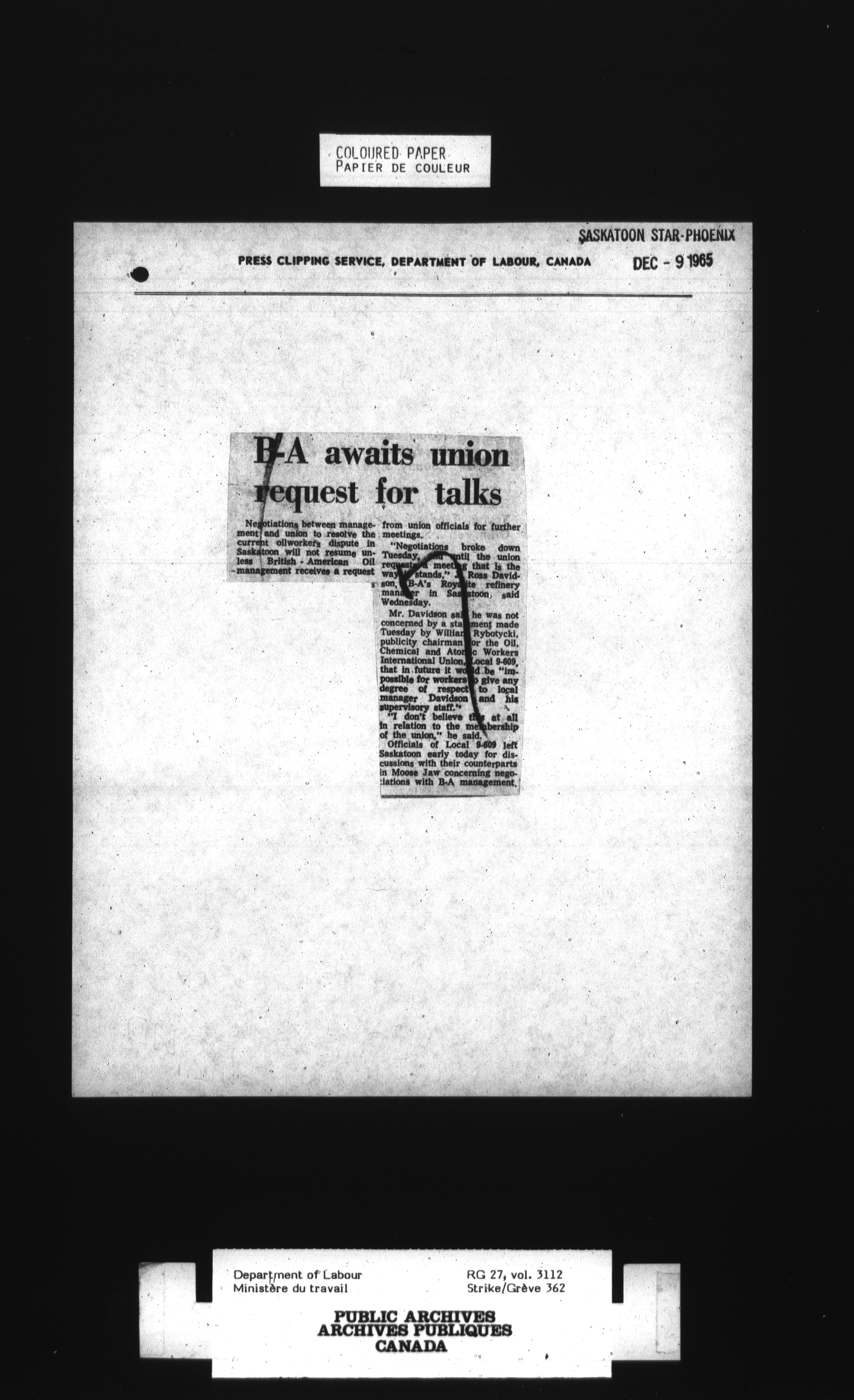 Department of Labour, Economics and Research Branch : Strikes and lockout files - 3417