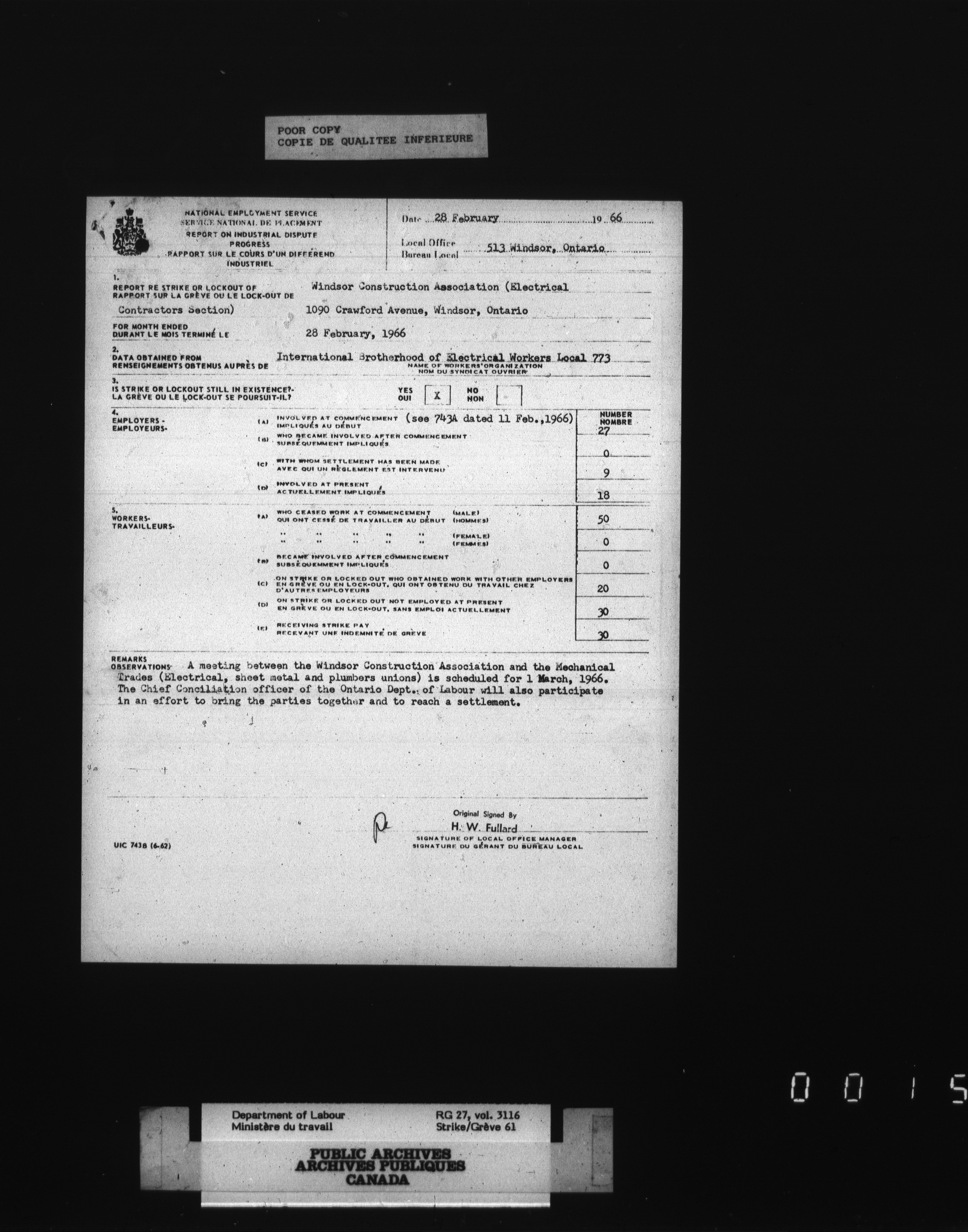 Department of Labour, Economics and Research Branch : Strikes and lockout files - 3418