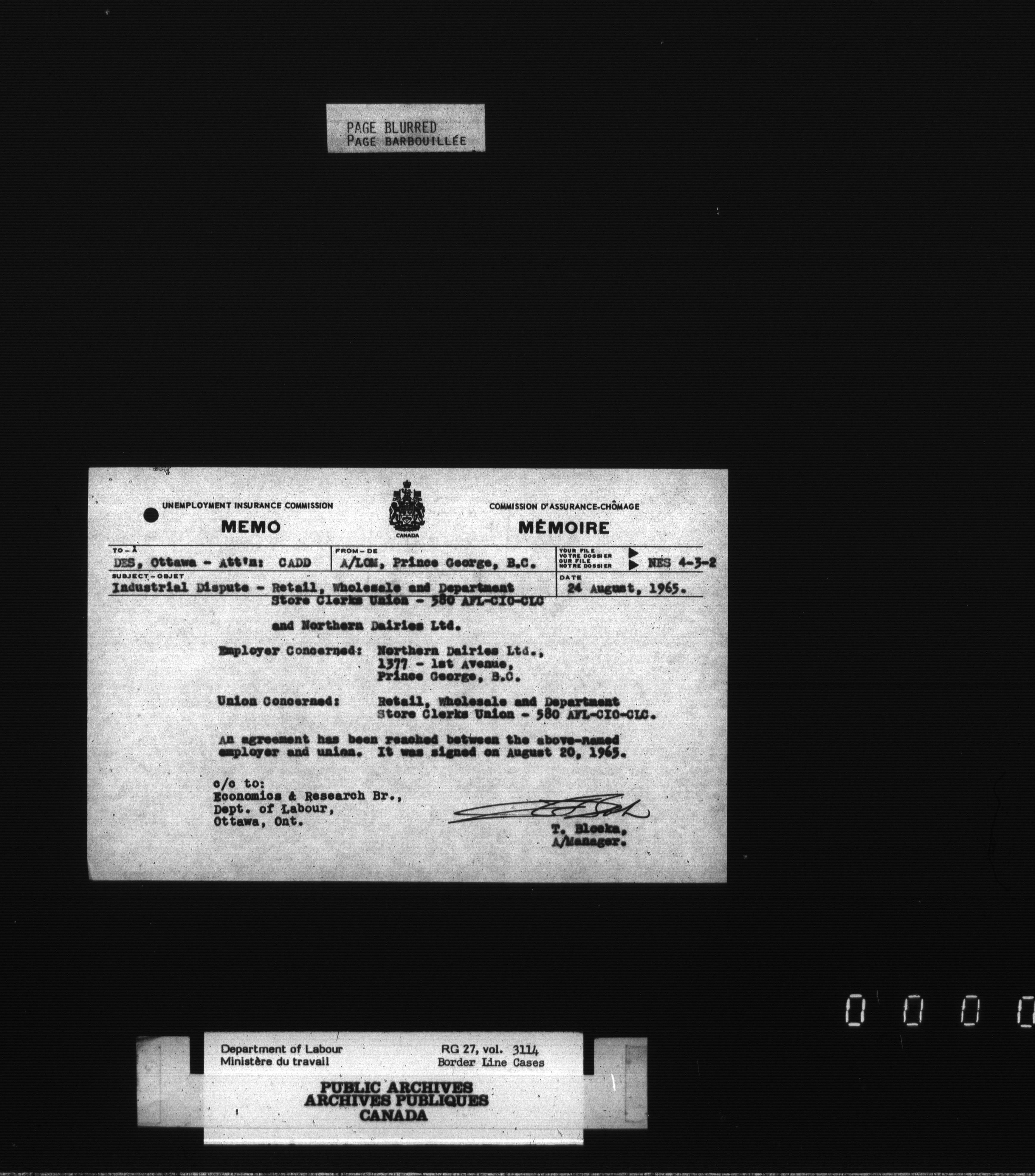 Department of Labour, Economics and Research Branch : Strikes and lockout files - 3418