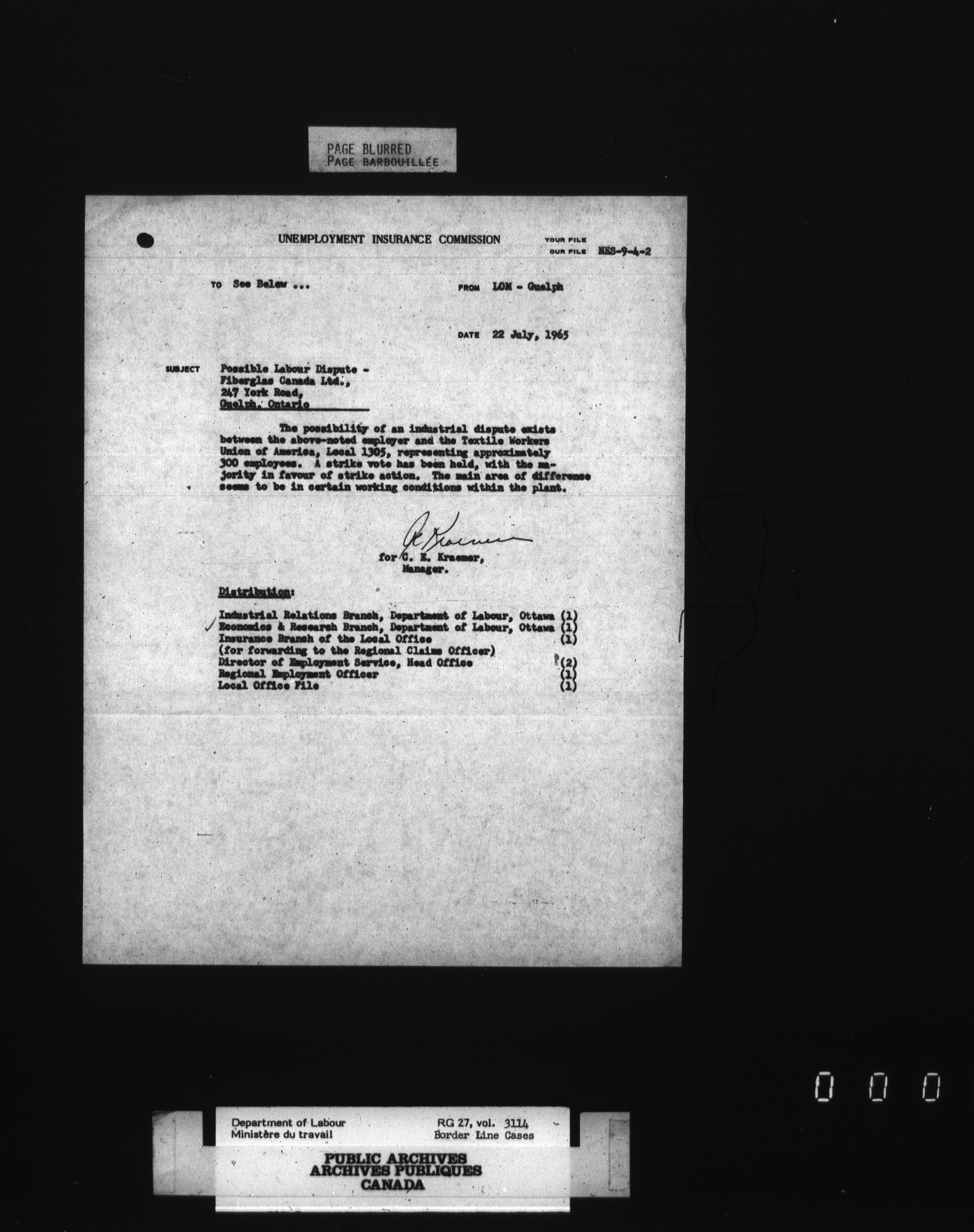 Department of Labour, Economics and Research Branch : Strikes and lockout files : T-3418